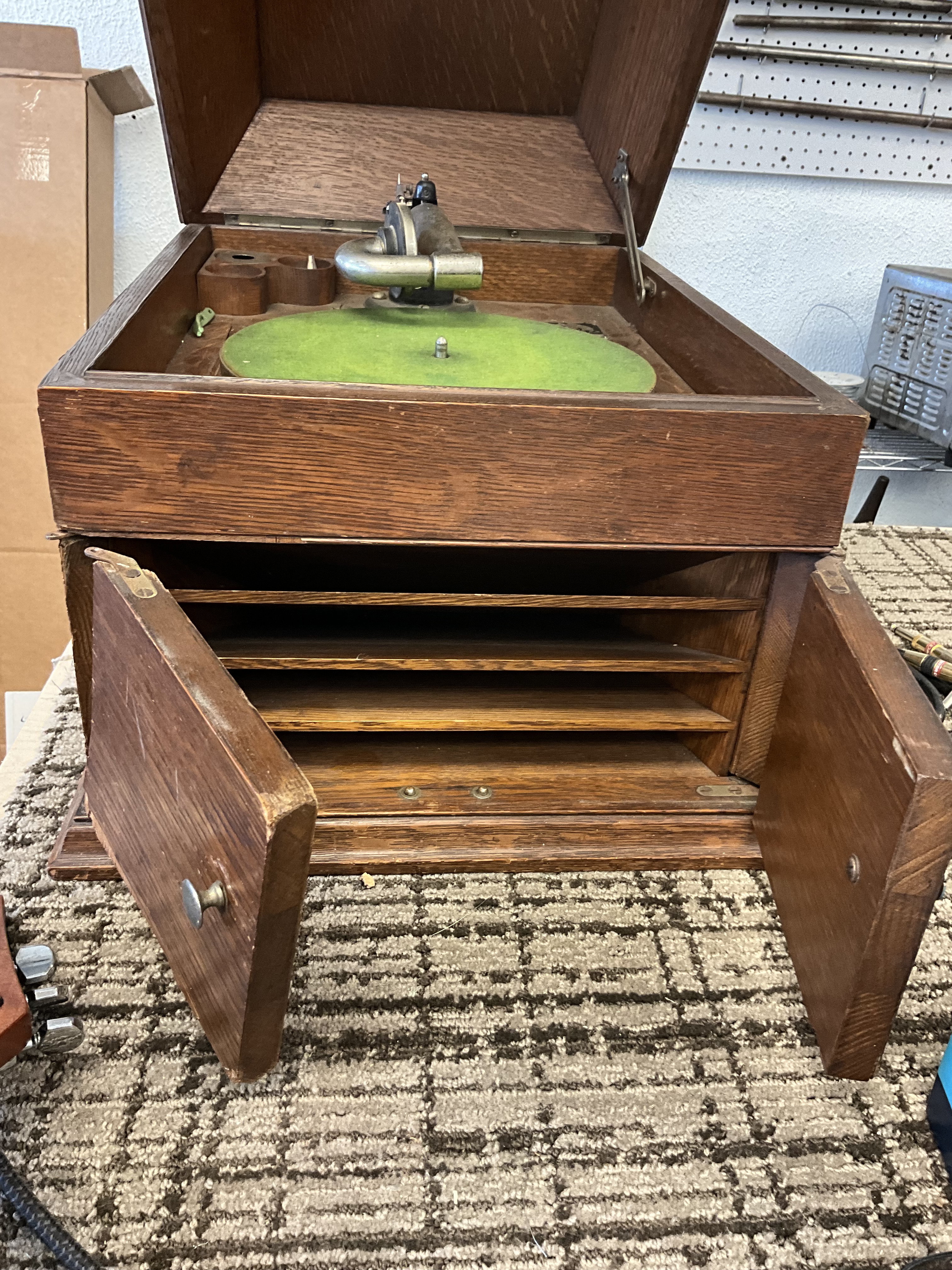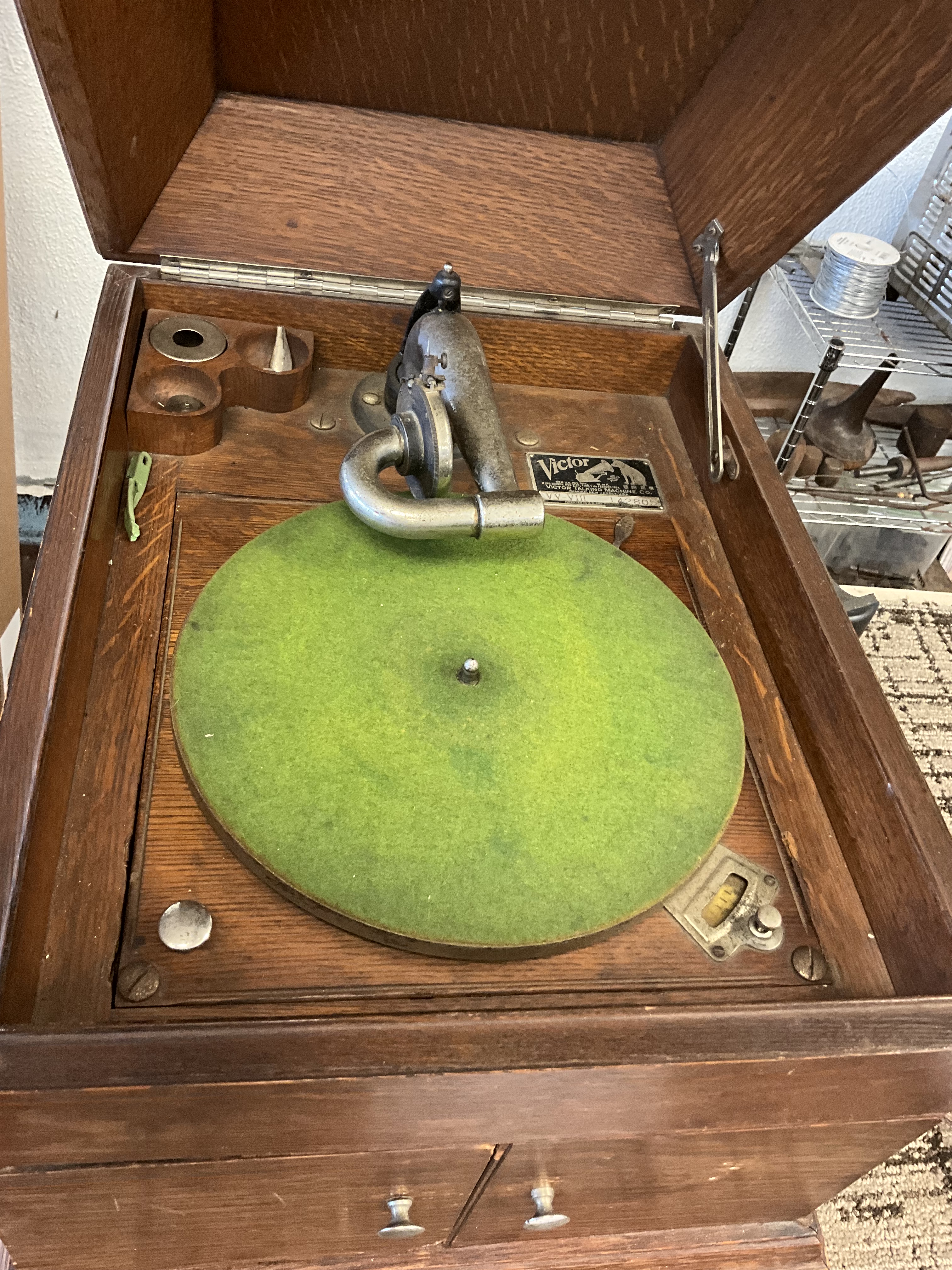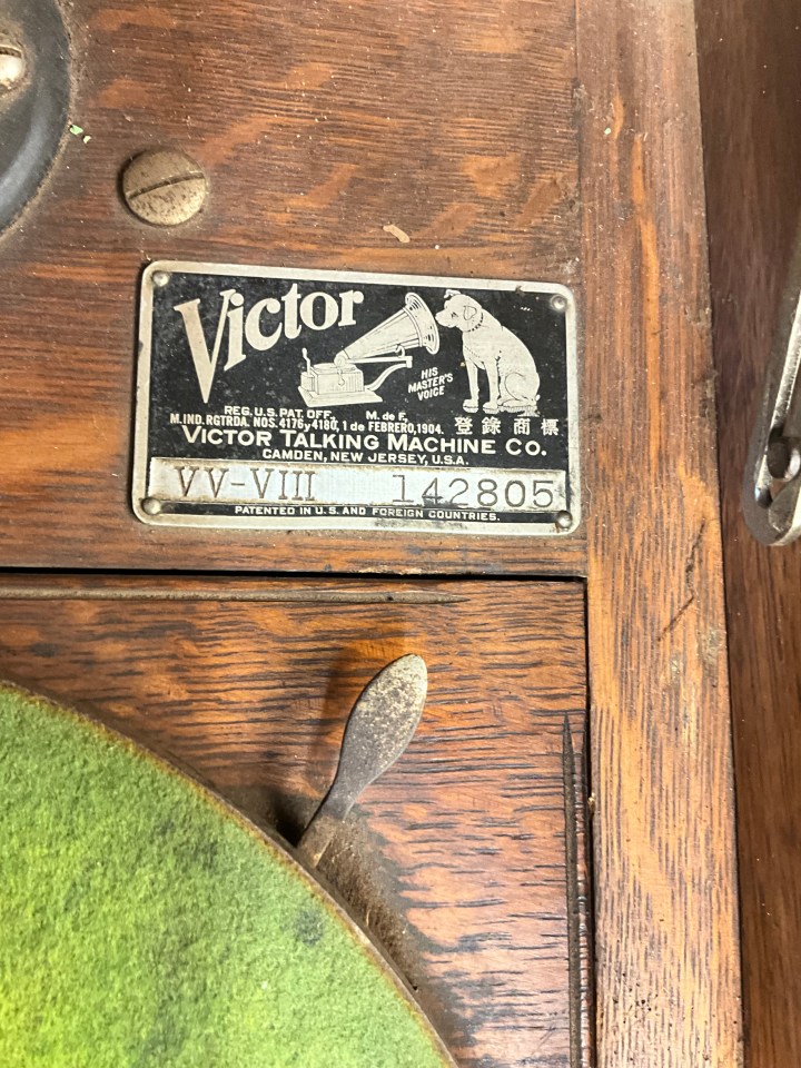 Manufactured in Camden, New Jersey by Victor Talking Machine Co. *please note, one of the weights is broken it’s still functions. ccFB $299 **tax and fees added in final price below domestic shipping available add additional $80