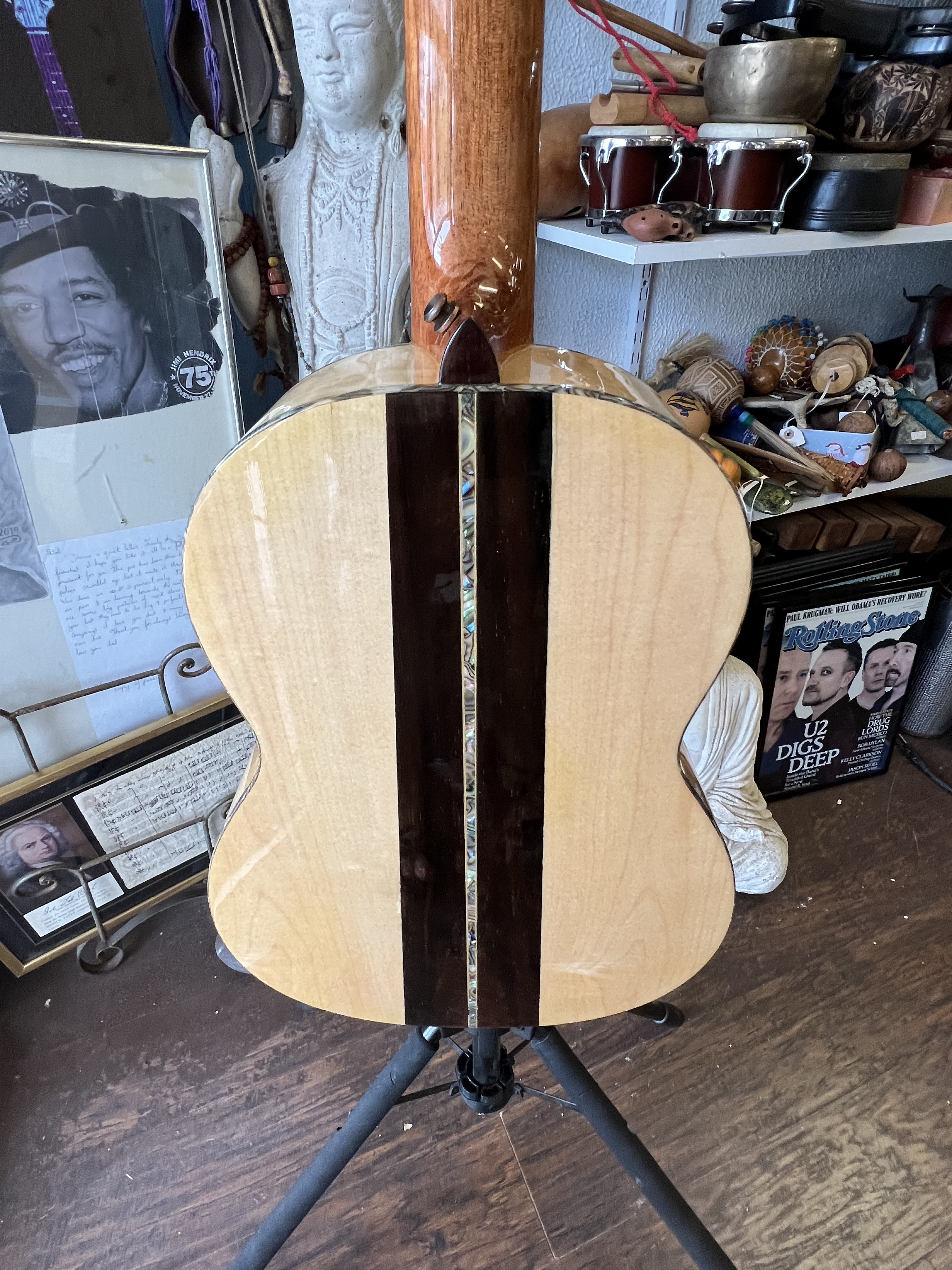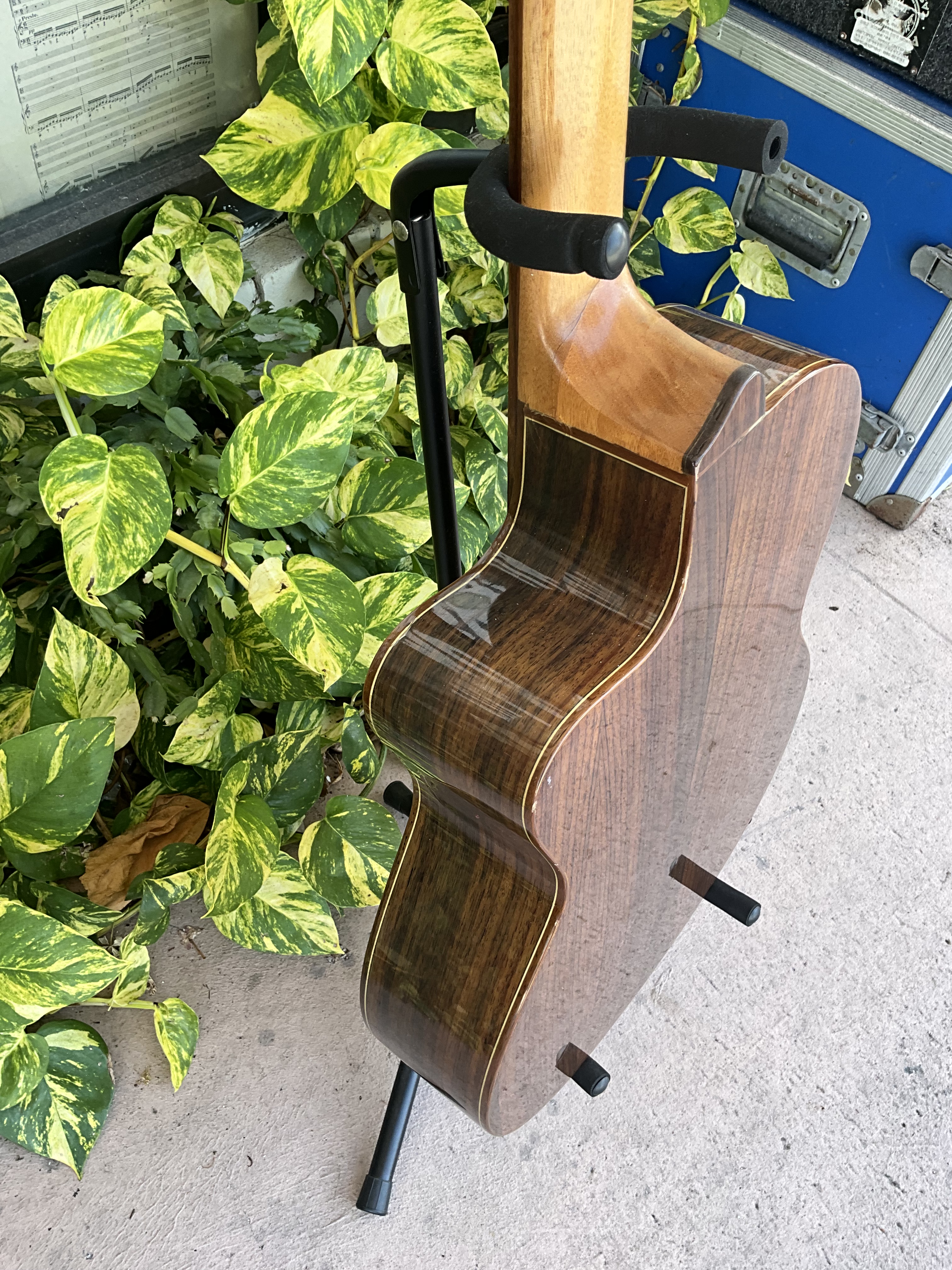 This beautiful instrument has a straight neck and plays great. Natural finish, abalone trim on sides and back. ccDB $1,500.00 **tax and fees added in final price below. domestic shipping available please add an additional $65.00