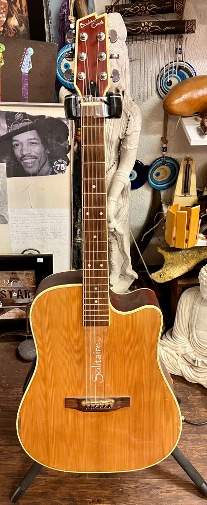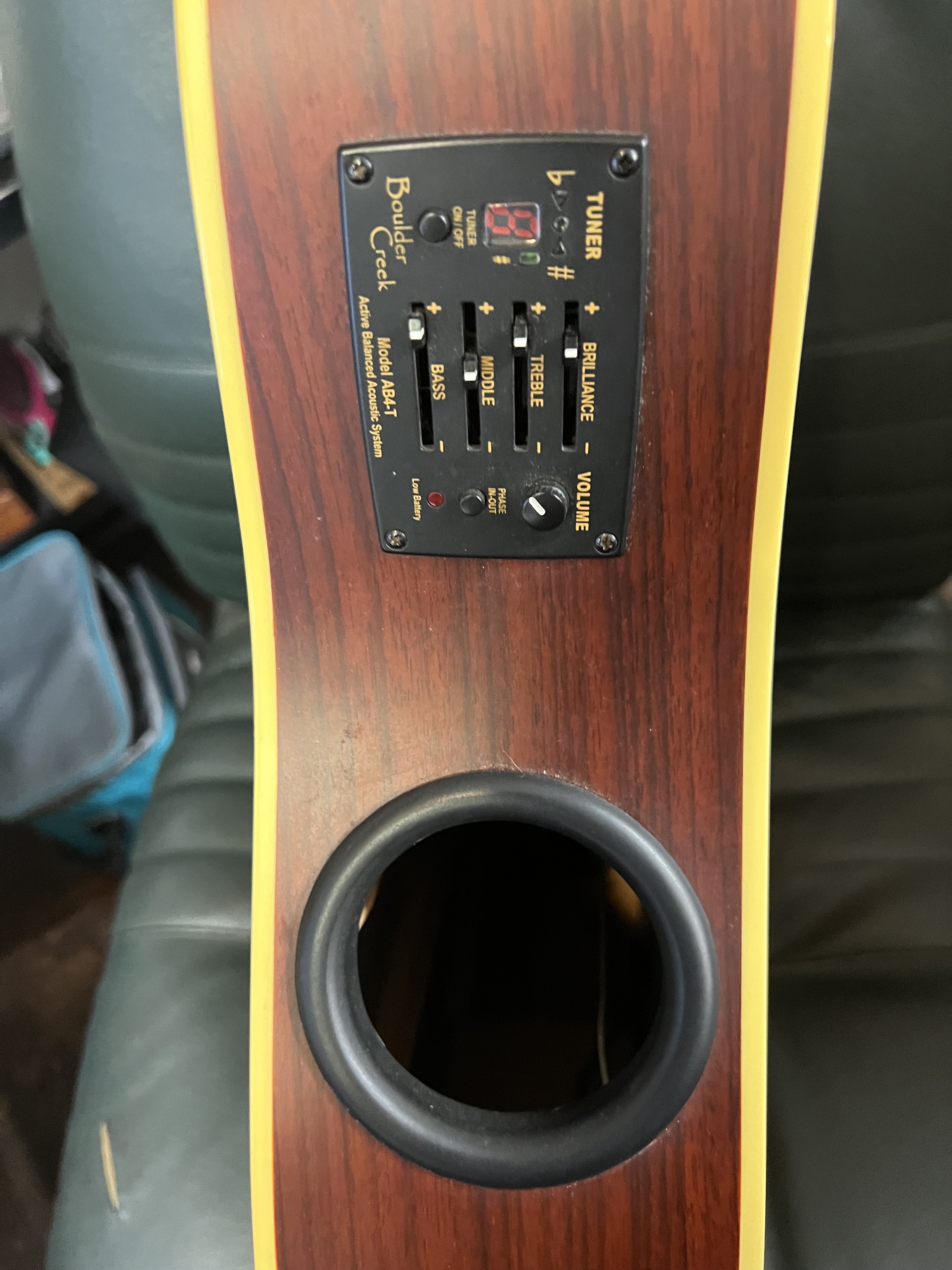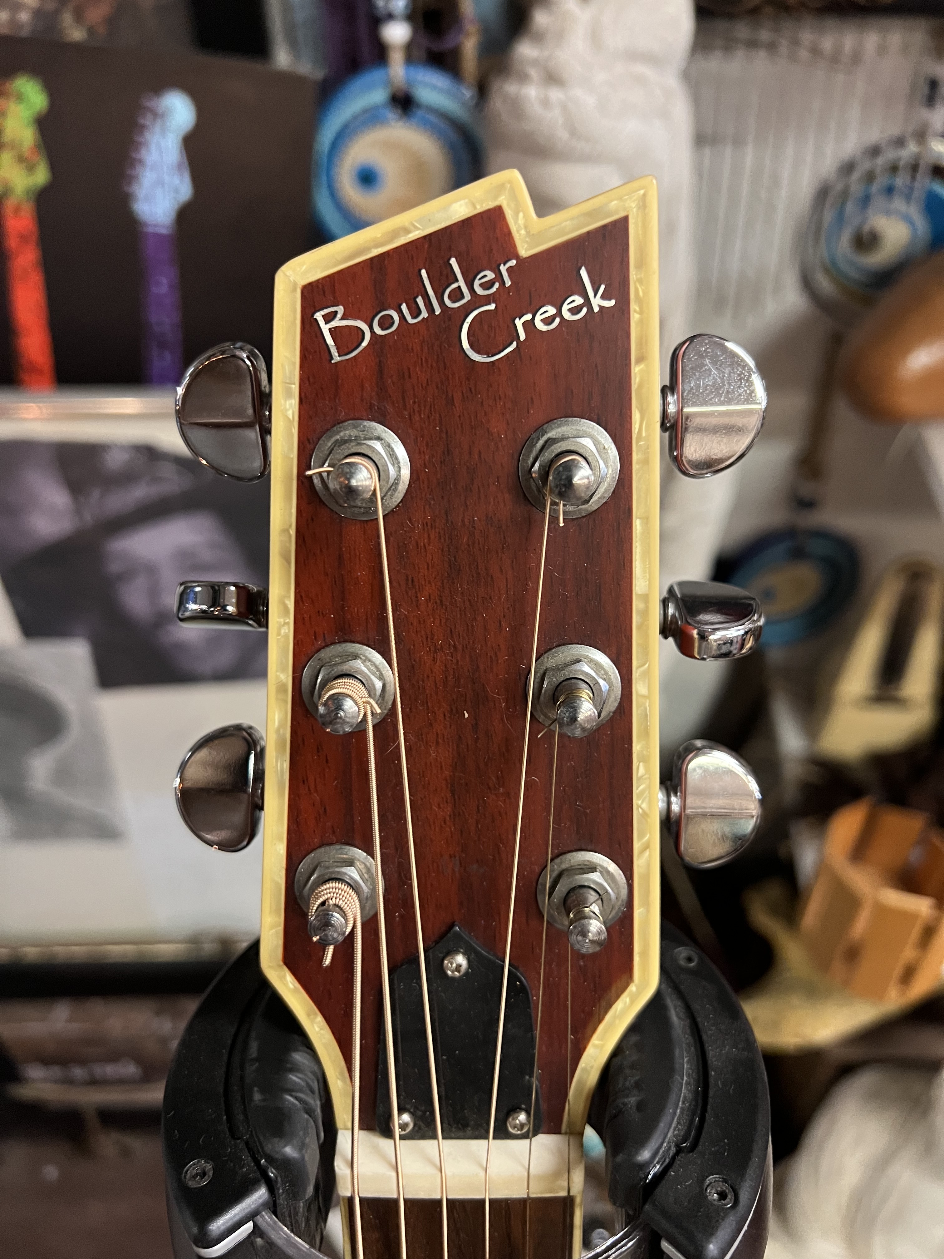 ECR4-NS Series: Solitaire Body Style: Cutaway Dreadnaught Finish: Natural Satin Top: Solid Cedar Back: Solid Rosewood Sides: Rosewood Scale Model: ECR4-NS Series: Solitaire Body Style: Cutaway Dreadnought Finish: Natural Satin Top: Solid Cedar Back: Solid Rosewood Sides: Rosewood Scale: 25 5/8″ Nut Width: 1 11/16″ Pickup System: AB4-T AB4-T Active Balanced Preamp System All Boulder Creek Acoustic Electric Models are equipped with the new AB4-T Active Balanced Acoustic System with on-board tuner. The specially designed cable-type saddle transducer reduces the “clunk” that is inherent in traditional piezo pickup systems. The AB4-T System also feature both balanced and unbalanced outputs for maximum signal and noise reduction in both stage and studio applications. $599.00 **tax and fees added in final price below. domestic shipping available please add an additional $65.00