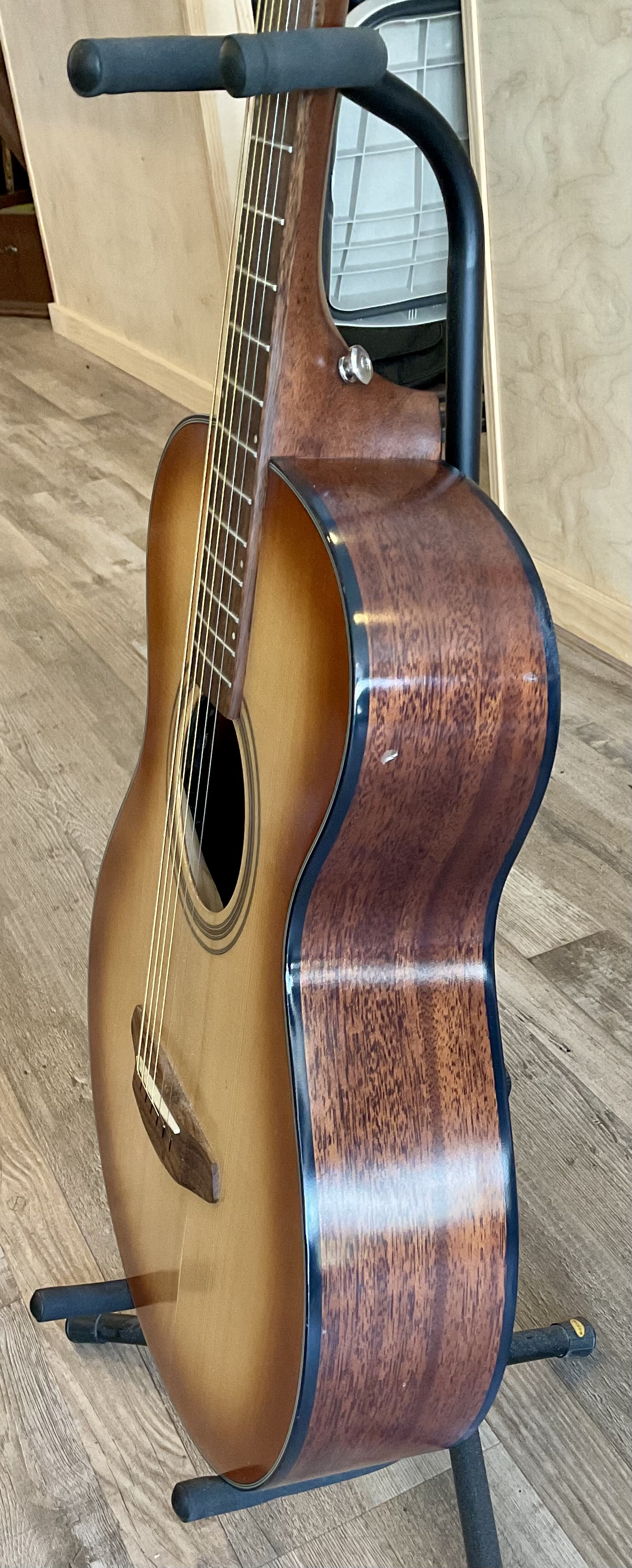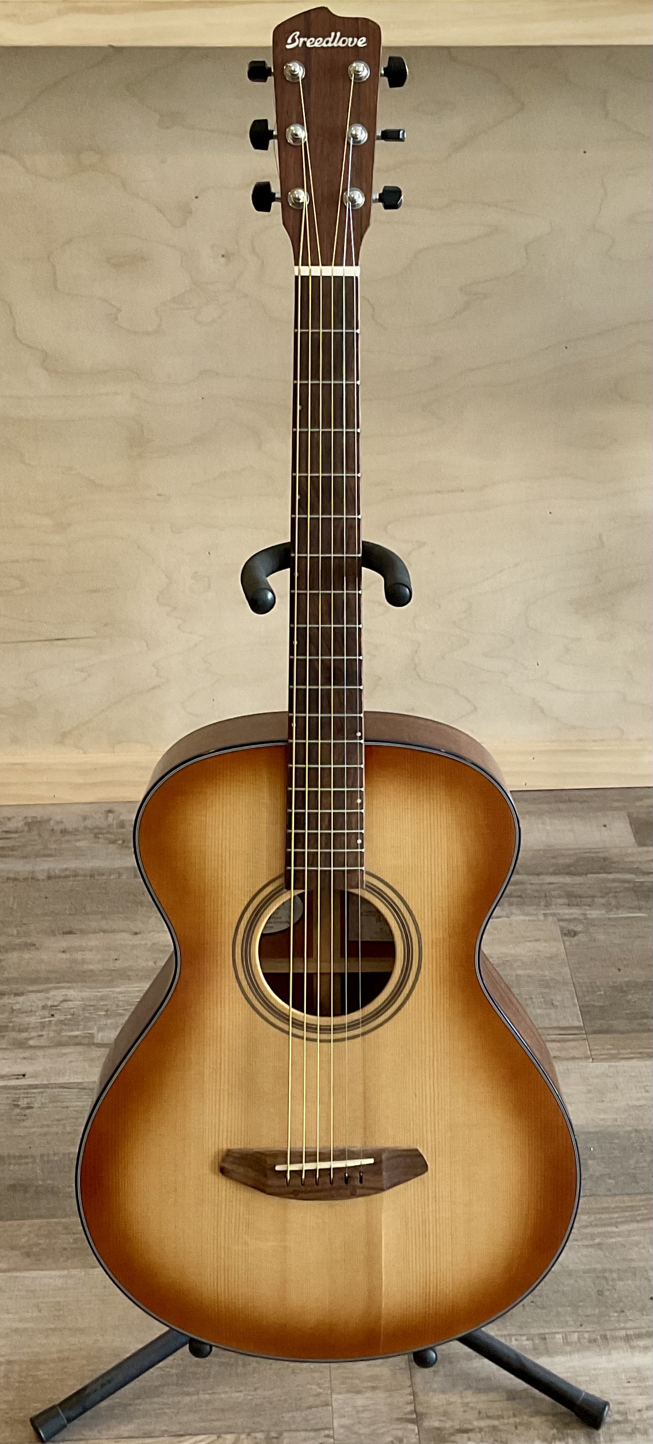 Breedlove’s Torrefied European Spruce – African Mahogany Signature Concert Copper E Acoustic Guitar is a non-cutaway acoustic guitar model, with all the classic lines of a vintage acoustic guitar and a modern secret weapon. The torrefaction process, with the European spruce top essentially roasted at the mill, makes it sound vintage, too. There’s a sonic wow factor at work in the Signature Concert Copper E that can’t be matched. The versatility and adaptability of the renowned Breedlove concert shape, developed 30 years ago and trusted ever since, is on full display, under a thin, shimmering Copper Burst semi-gloss finish no less. With no clear-cut woods, the Signature Concert Copper E harks back to the Golden Age of the acoustic guitar, while heralding a new one. Neck straight, plays great. $599 **tax and fees added in final price below domestic shipping available add additional $65
