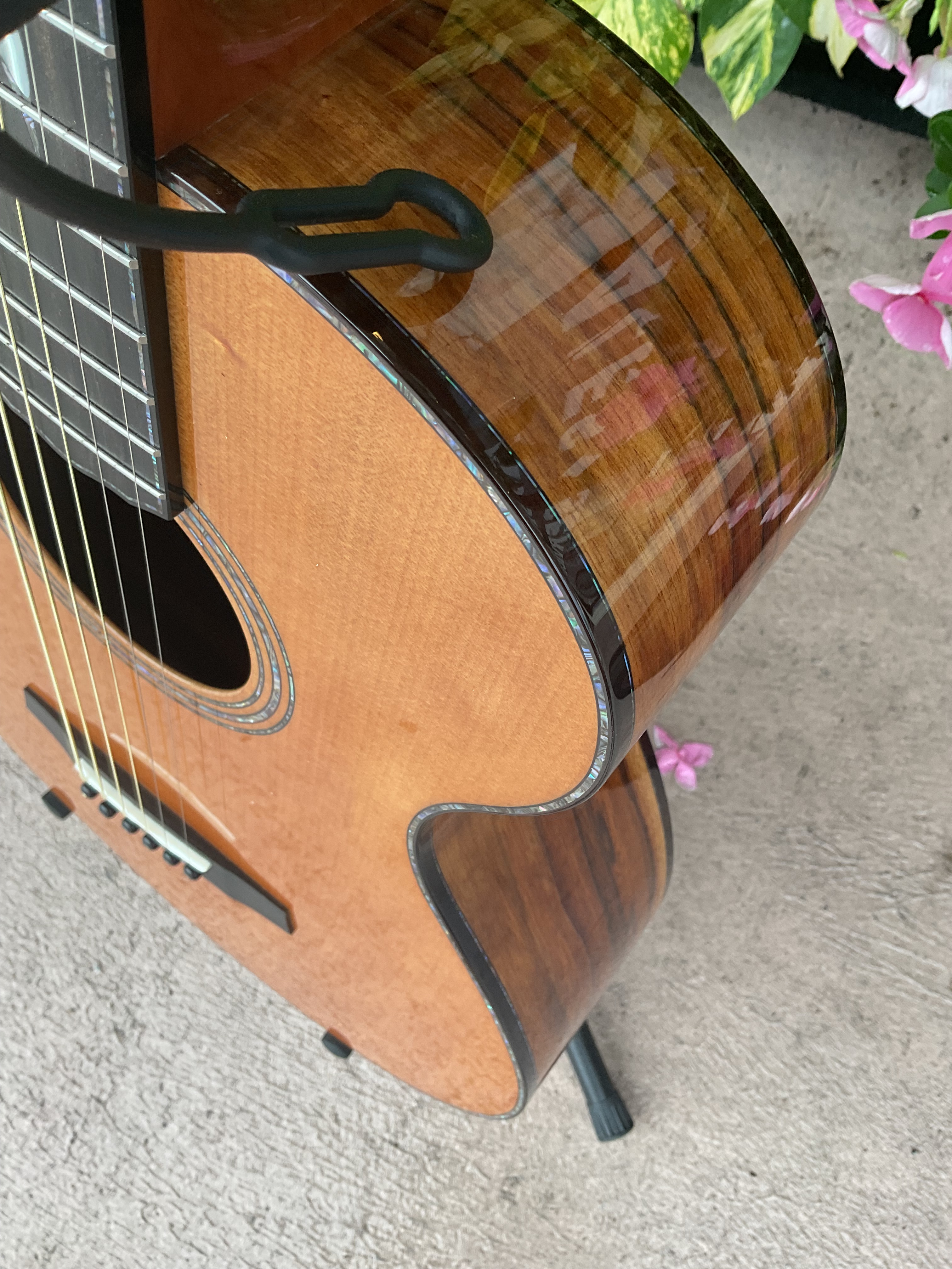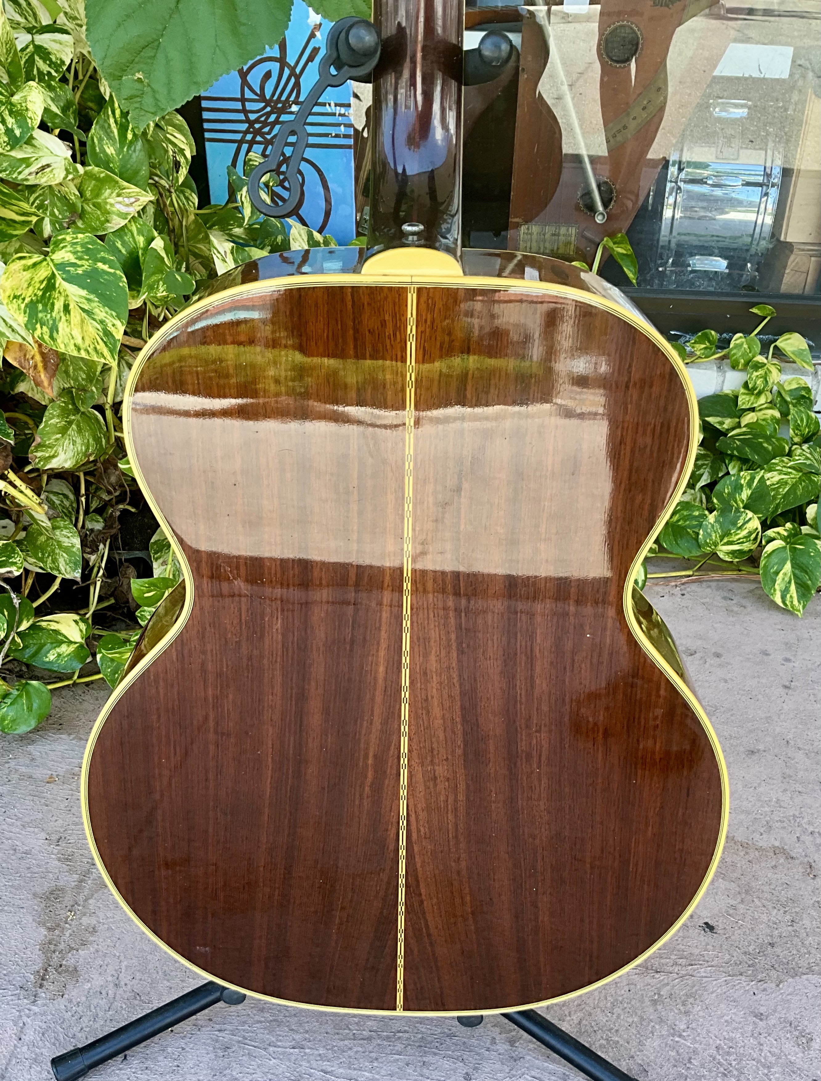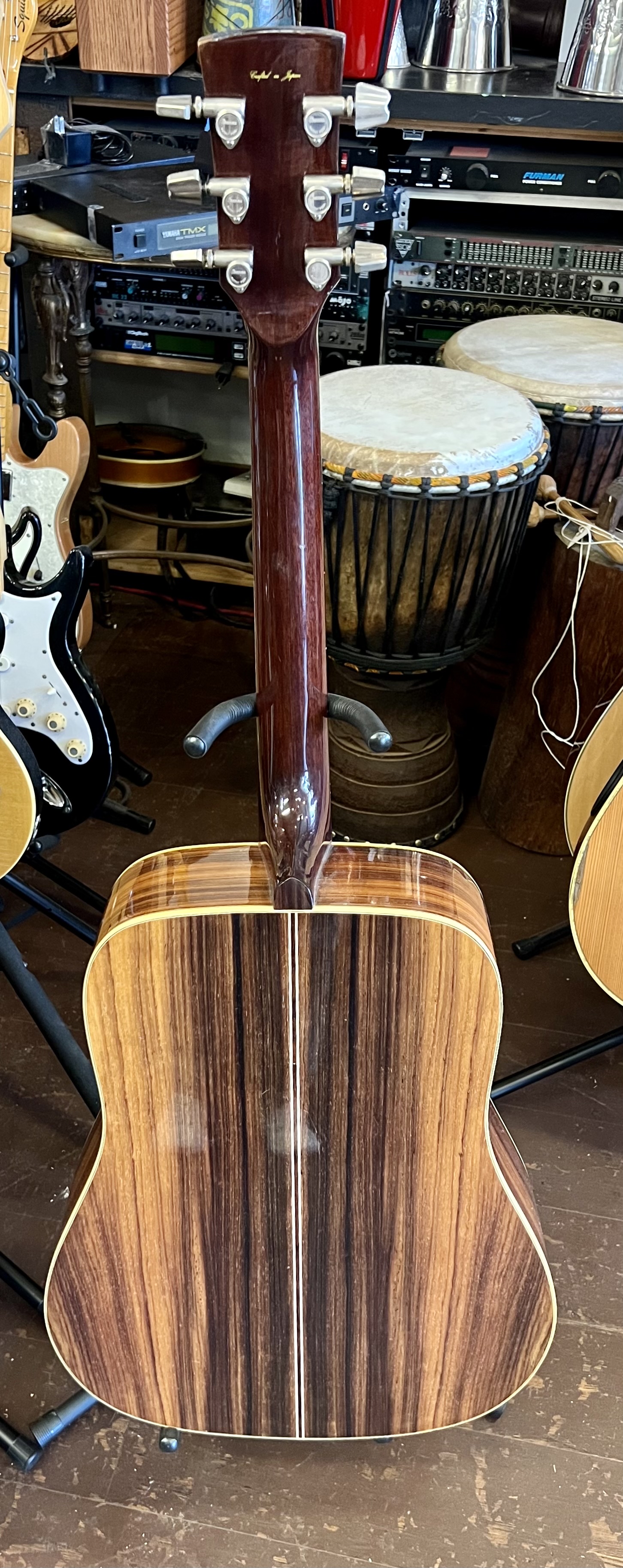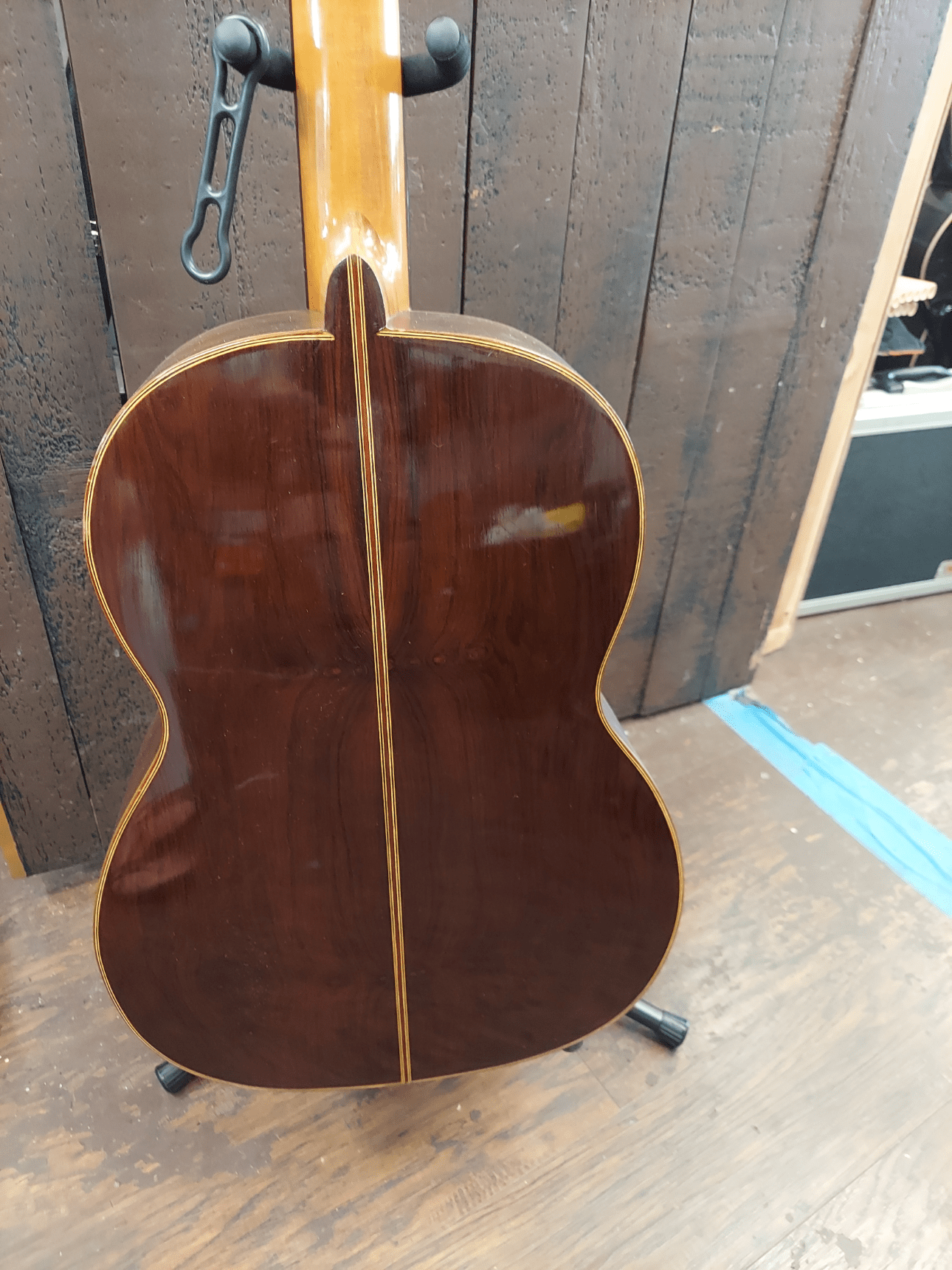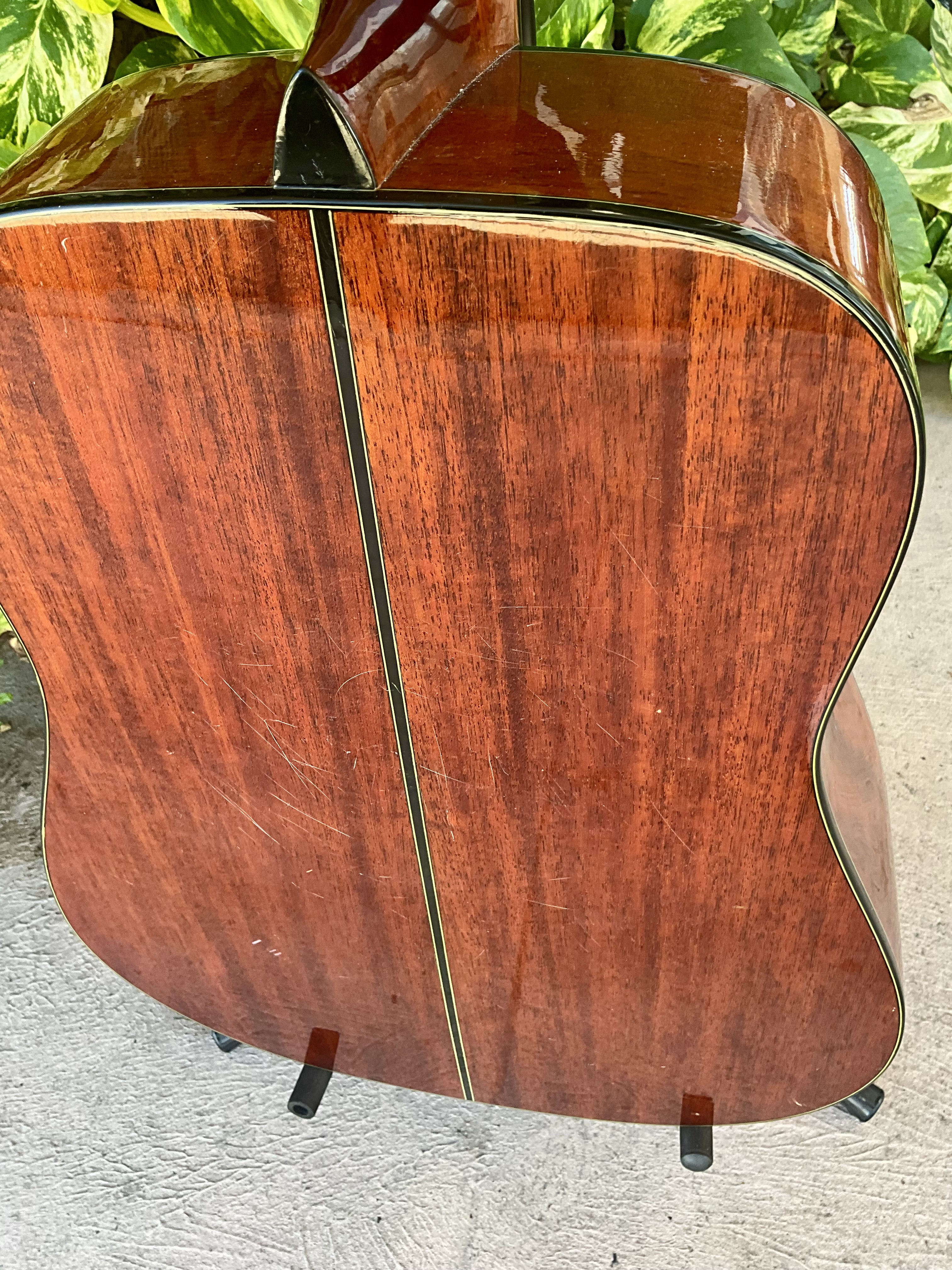Beautiful Brazilian Rosewood ! there aren’t many like it around .comes with under the saddle pickup with an in-sound hole volume control also sold with original black case with dark green plush lining. This instrument has been lovingly played by a master , perfecting the tone . The lacquer has deepened into a beautiful amber color. $5,500 **tax and fees added in final price below. domestic shipping available please add an additional $70.00