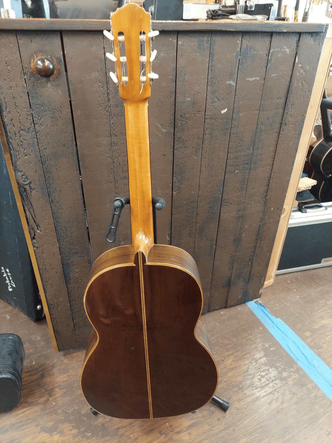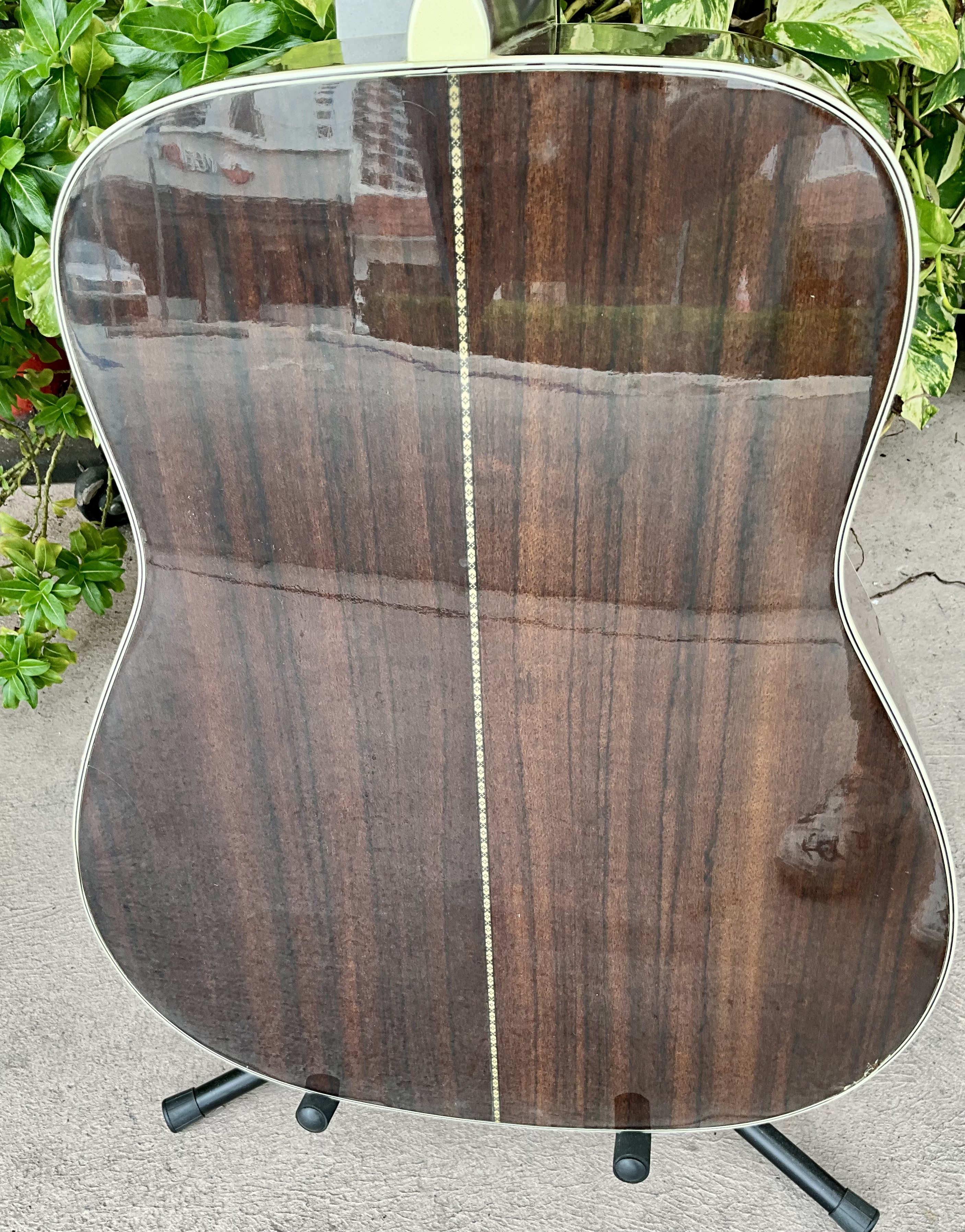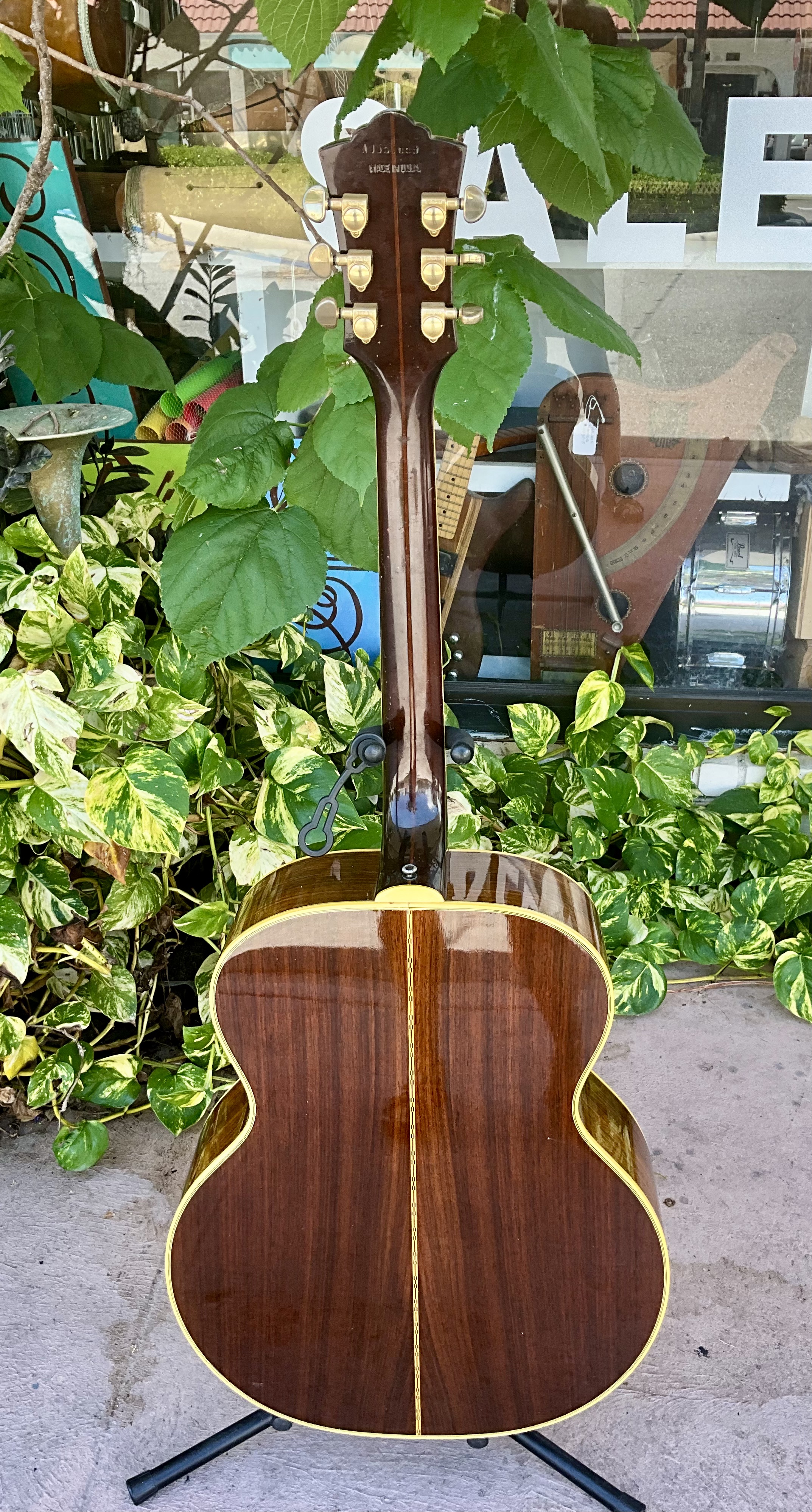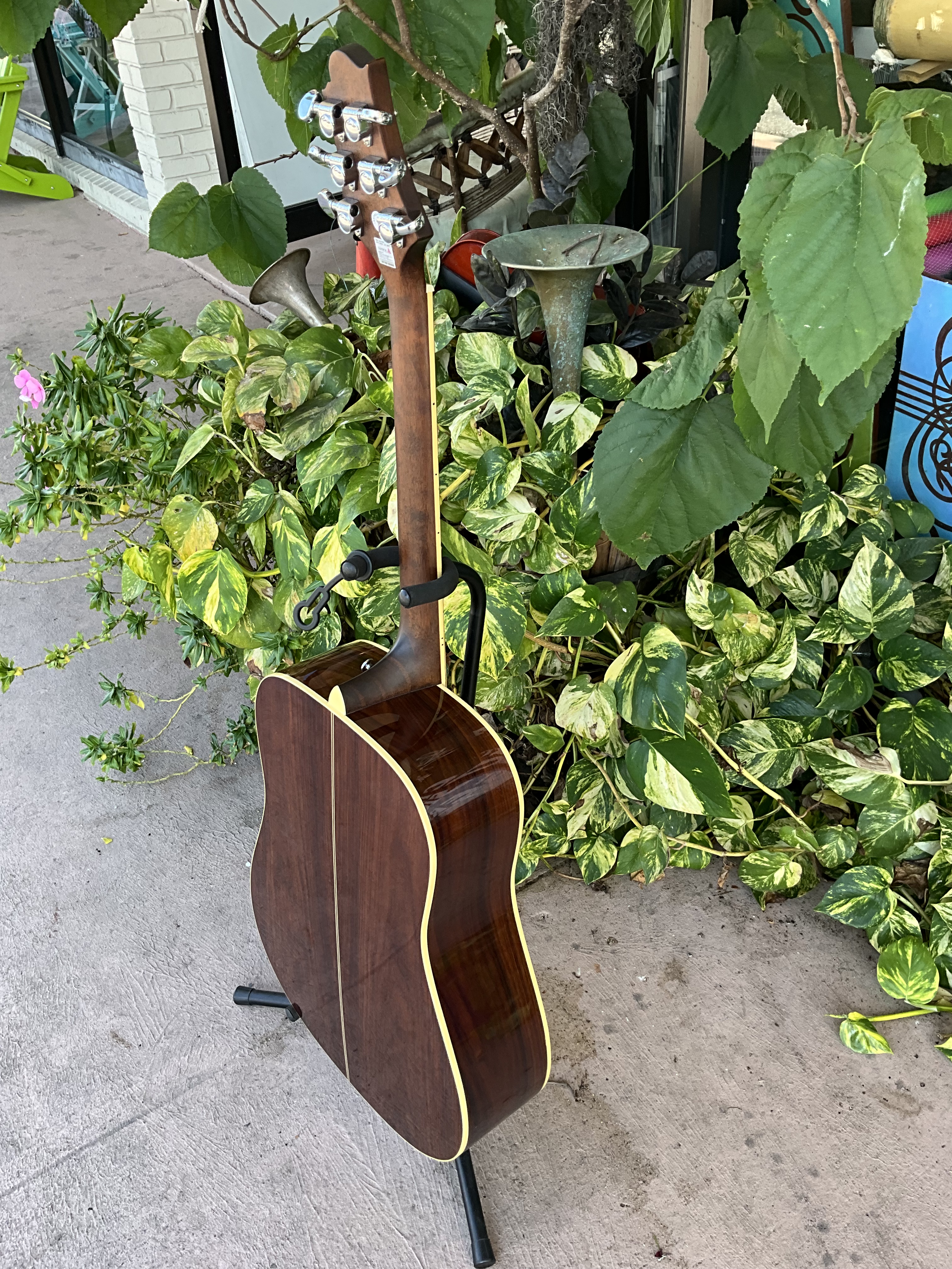 Beautiful Brazilian Rosewood ! there aren’t many like it around .comes with under the saddle pickup with an in-sound hole volume control also sold with original black case with dark green plush lining. This instrument has been lovingly played by a master , perfecting the tone . The lacquer has deepened into a beautiful amber color. $5,500 **tax and fees added in final price below. domestic shipping available please add an additional $70.00