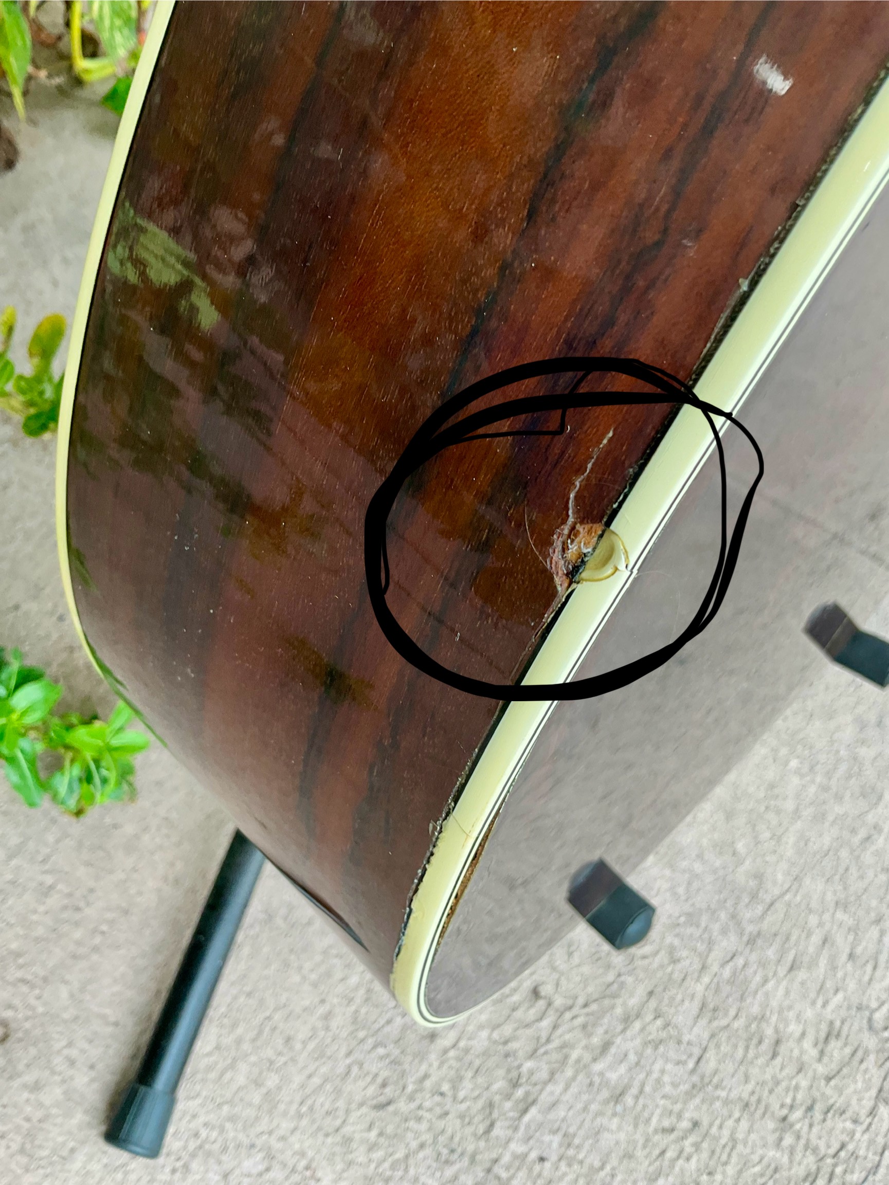 This guitar plays well , neck straight, cracks have all been glued up and does not affect the sound or playability. $499.00 **tax and fees added in final price below. domestic shipping available please add an additional $65.00