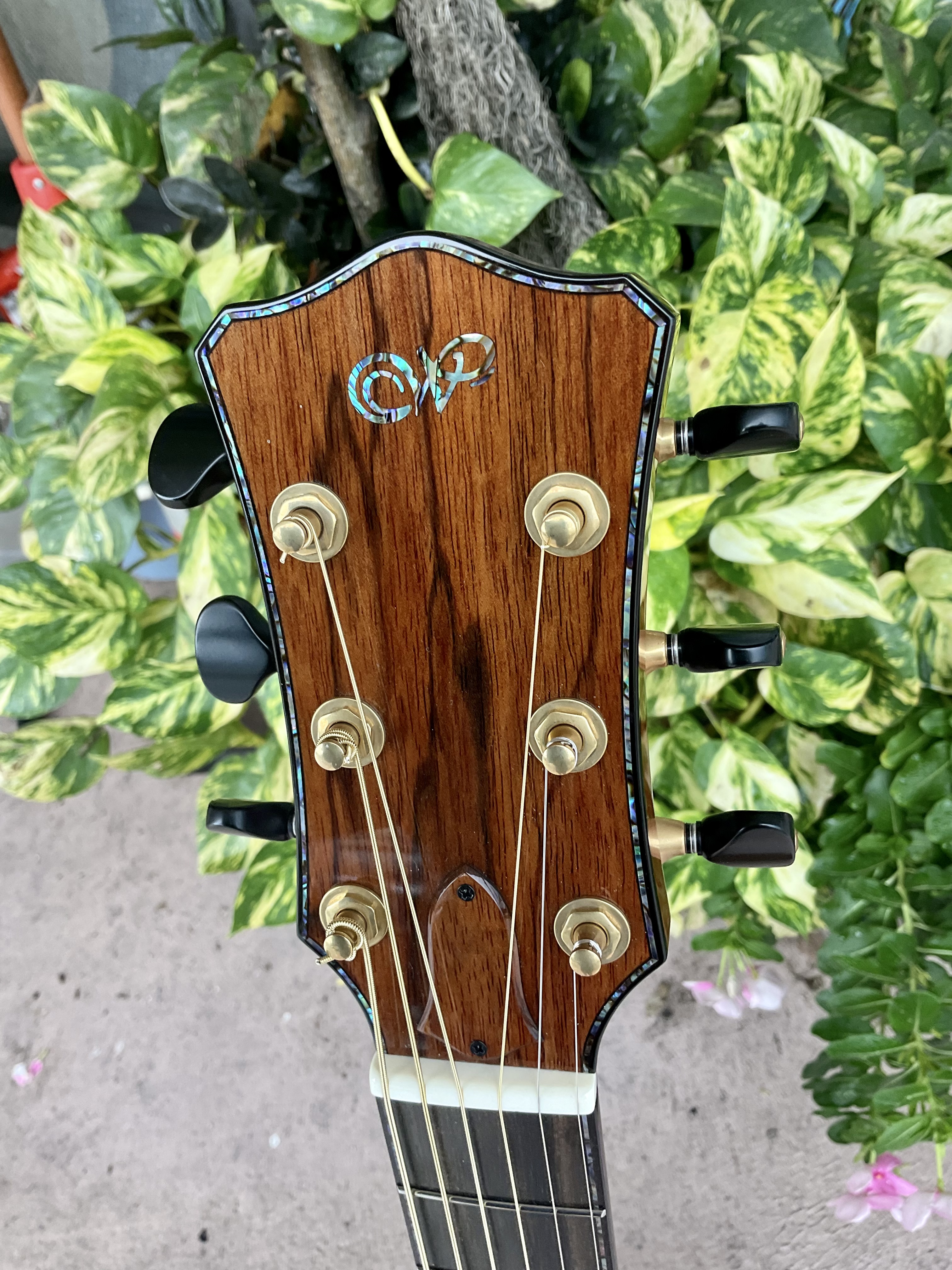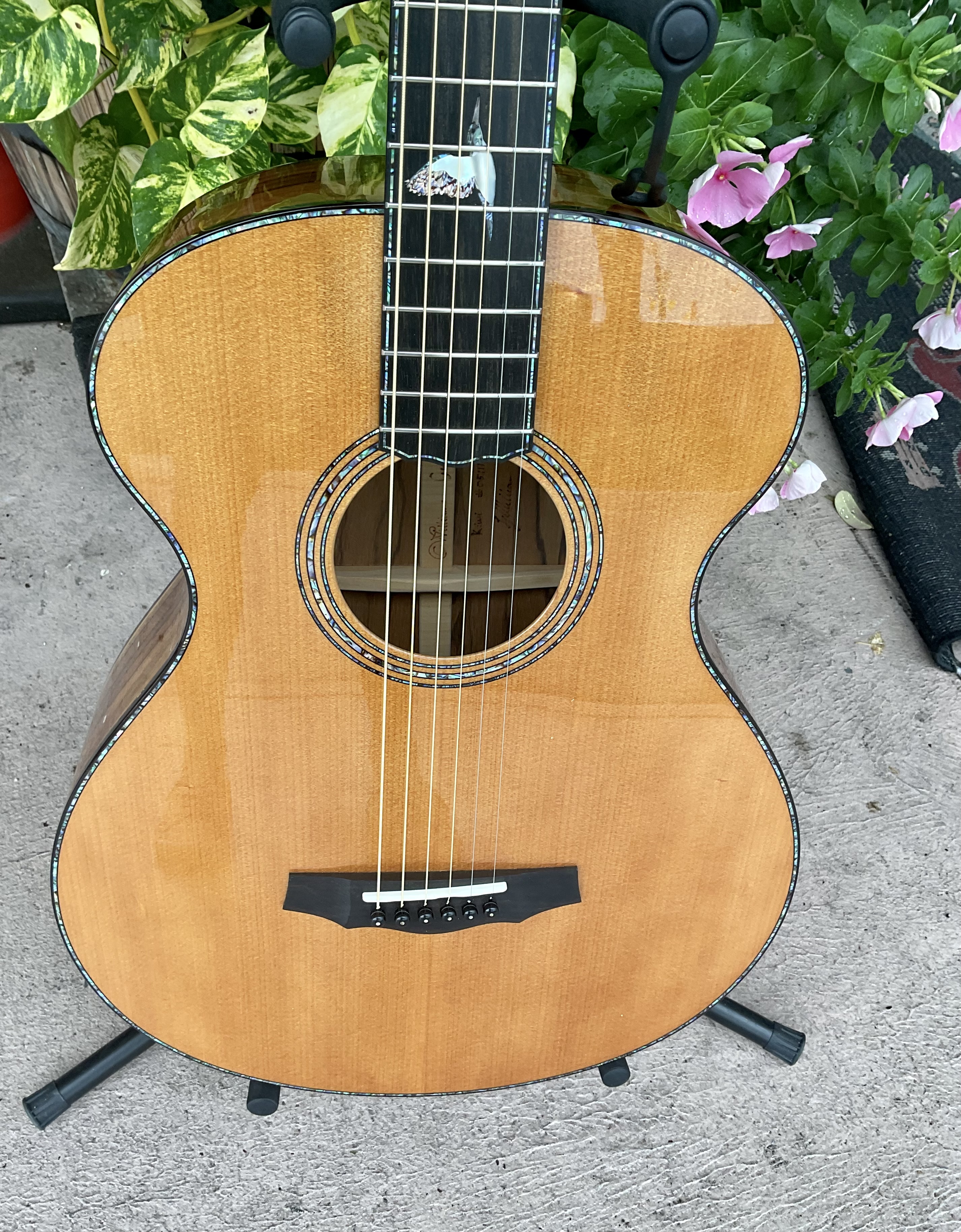 SERIAL #05111 Tonewood , Taraire Laurie Williams made his claim to fame several years ago when he discovered his legendary “Whitebait” Kauri log, which he then converted into billets for instrument making, but that’s not the only local wood (exotic for us) that Williams employs in his powerful stringed instruments. In addition to Kauri, with its warmth and great projection (like the difference between Cedar and Redwood, but amplified), he chose to construct the back and sides on this 2005 Kiwi with Taraire, a New Zealand species similar to the Rosewood family with its rich, balanced tone and workability This beautiful guitar has some special upgrades such as New Zealand paua shell purfling to the back and sides, and more to the original rosette, fingerboard and headstock and with the kingfisher inlayed on the fingerboard .also the binding has upgrades as well with the same Pau shell. The neck has been upgraded to the New Zealand river totara . This is an exquisite guitar and once in a lifetime piece! Mint Condition $12,000.00 **tax and fees added in final price below. domestic shipping available please add an additional $80.00 ccH