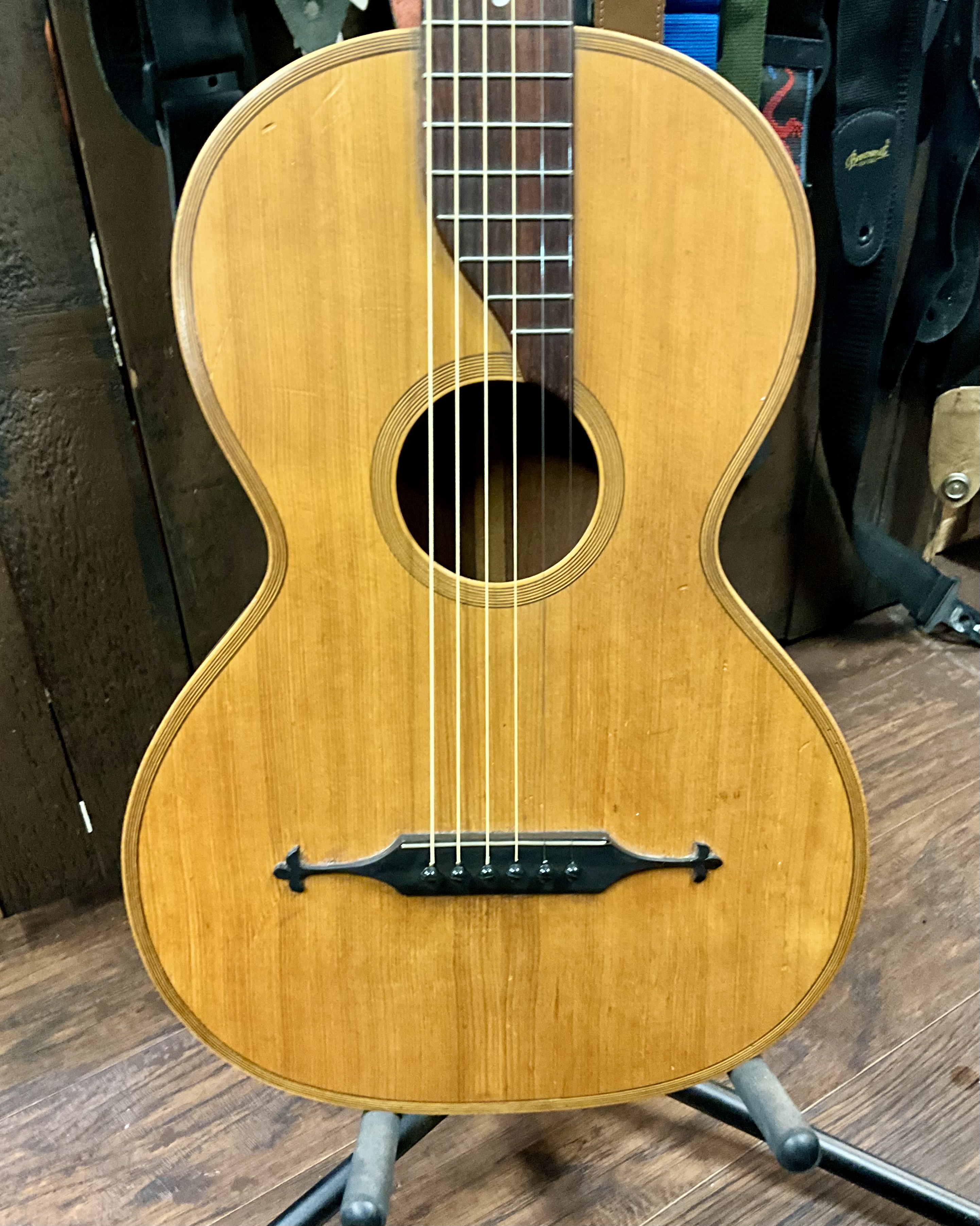 Keller Shells Parlor Acoustic Guitar – Vintage 1800s – w/ Mustache Bridge – Natural