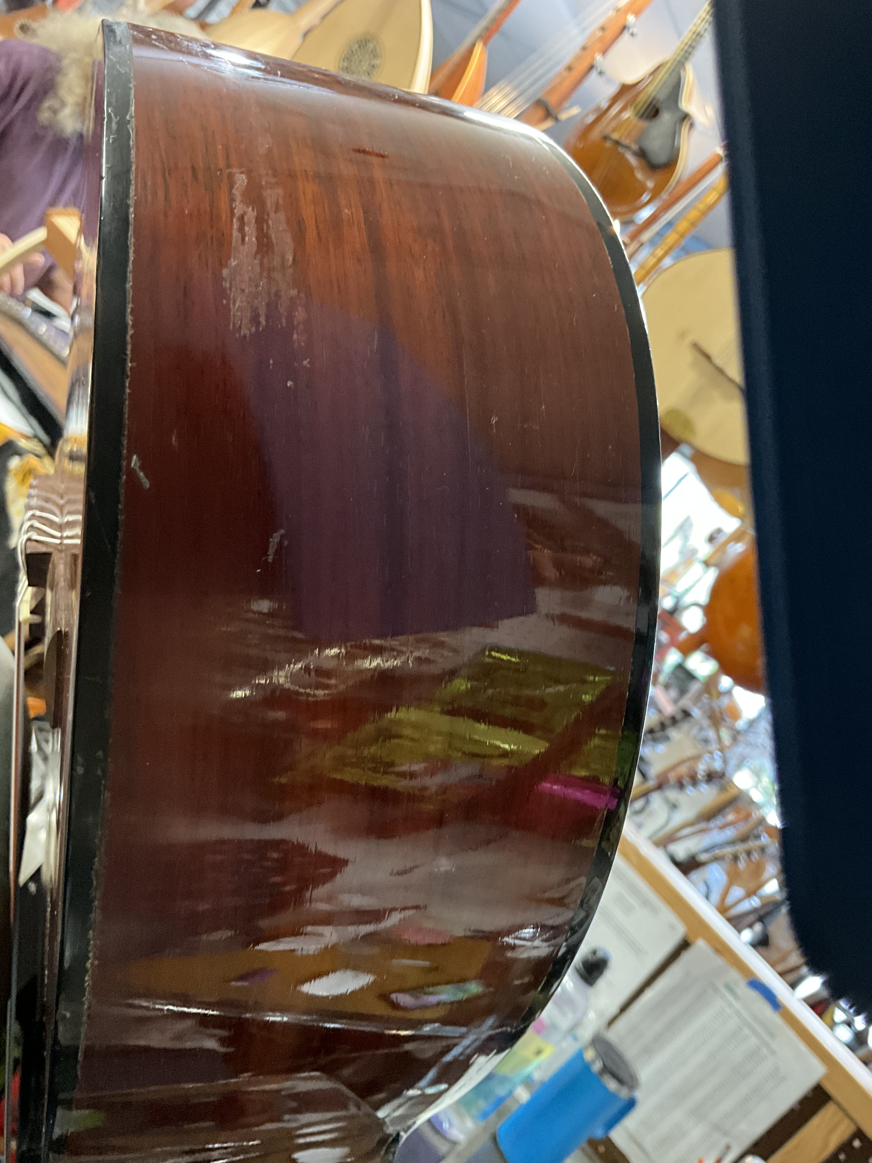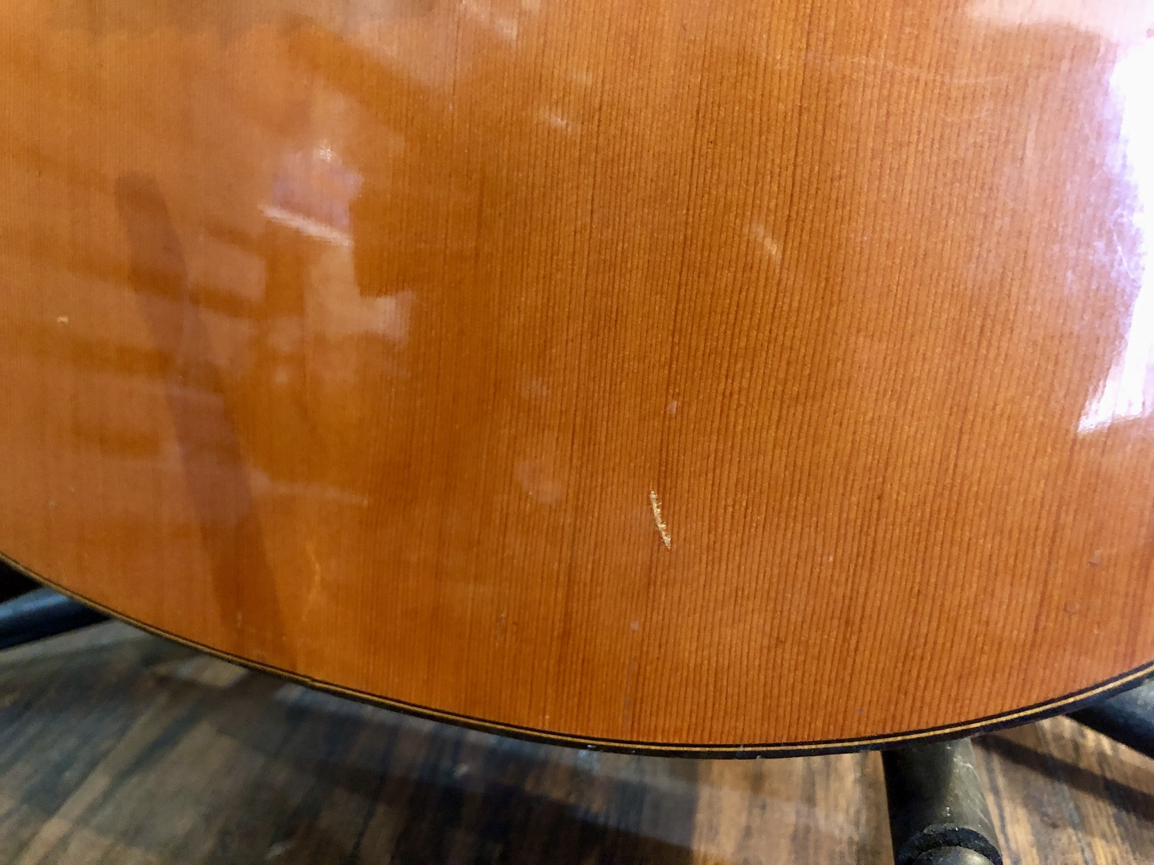 Cracks have been glued, small piece missing around the rosette, action is very good, bridge is glued solid, fantastic sound, great guitar . $900.00 **tax and fees added in final price below. domestic shipping available please add an additional $65.00