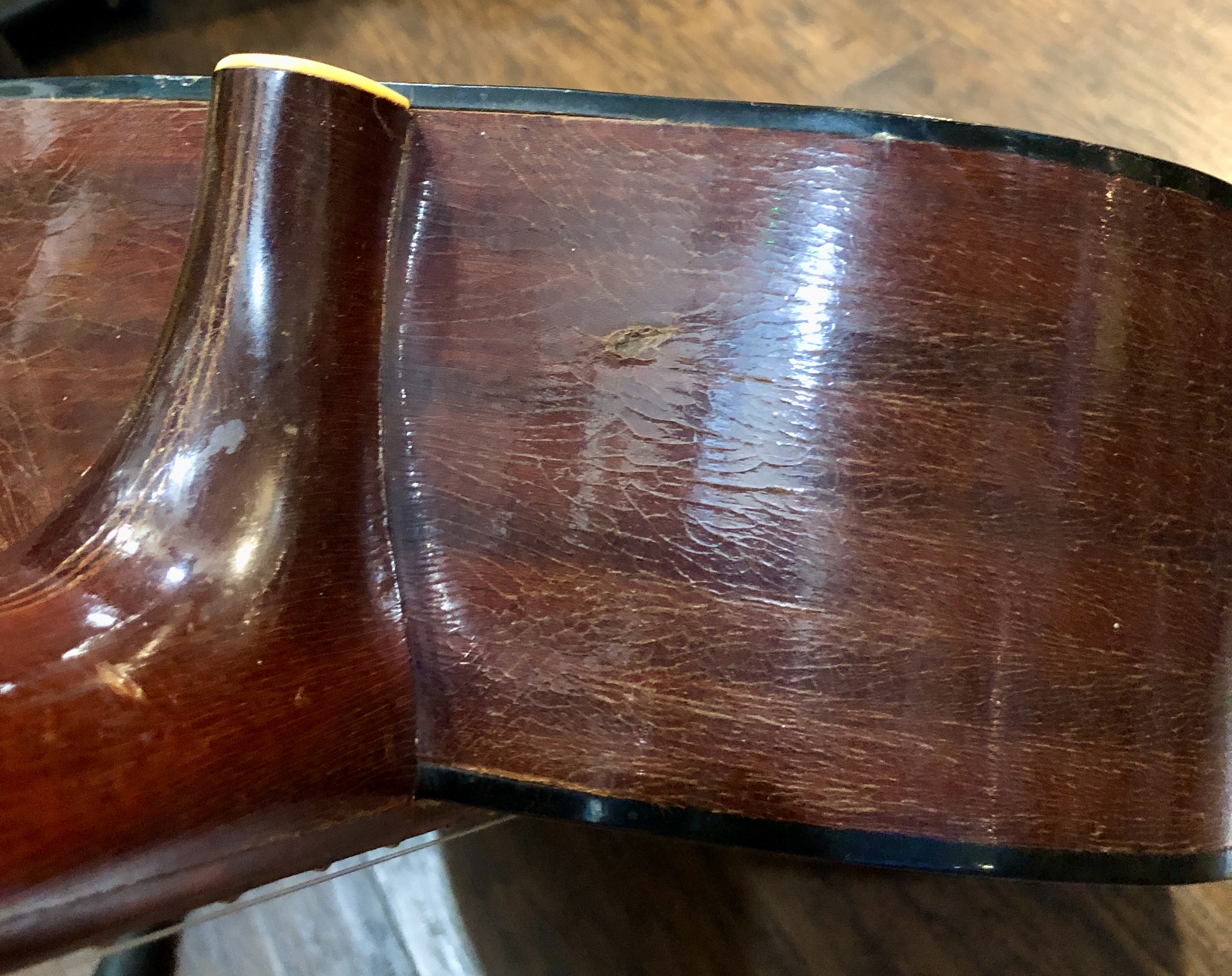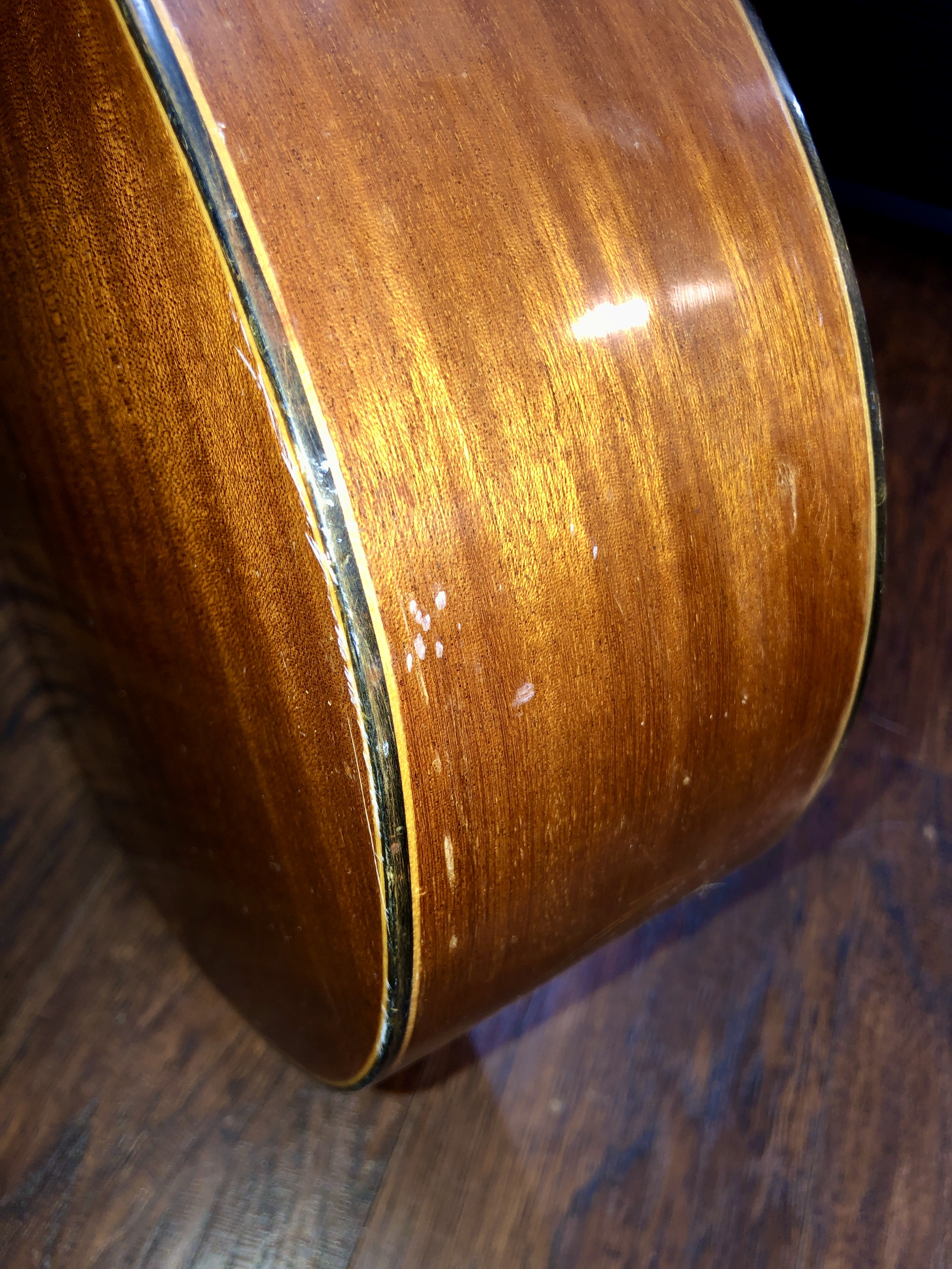 This has a dent in the bottom back corner , there is a crack in the back that has been reglued. The neck is straight, action is fine, playability excellent. $999.00 **tax and fees added in final price below. domestic shipping available please add an additional $65.00 (E00)