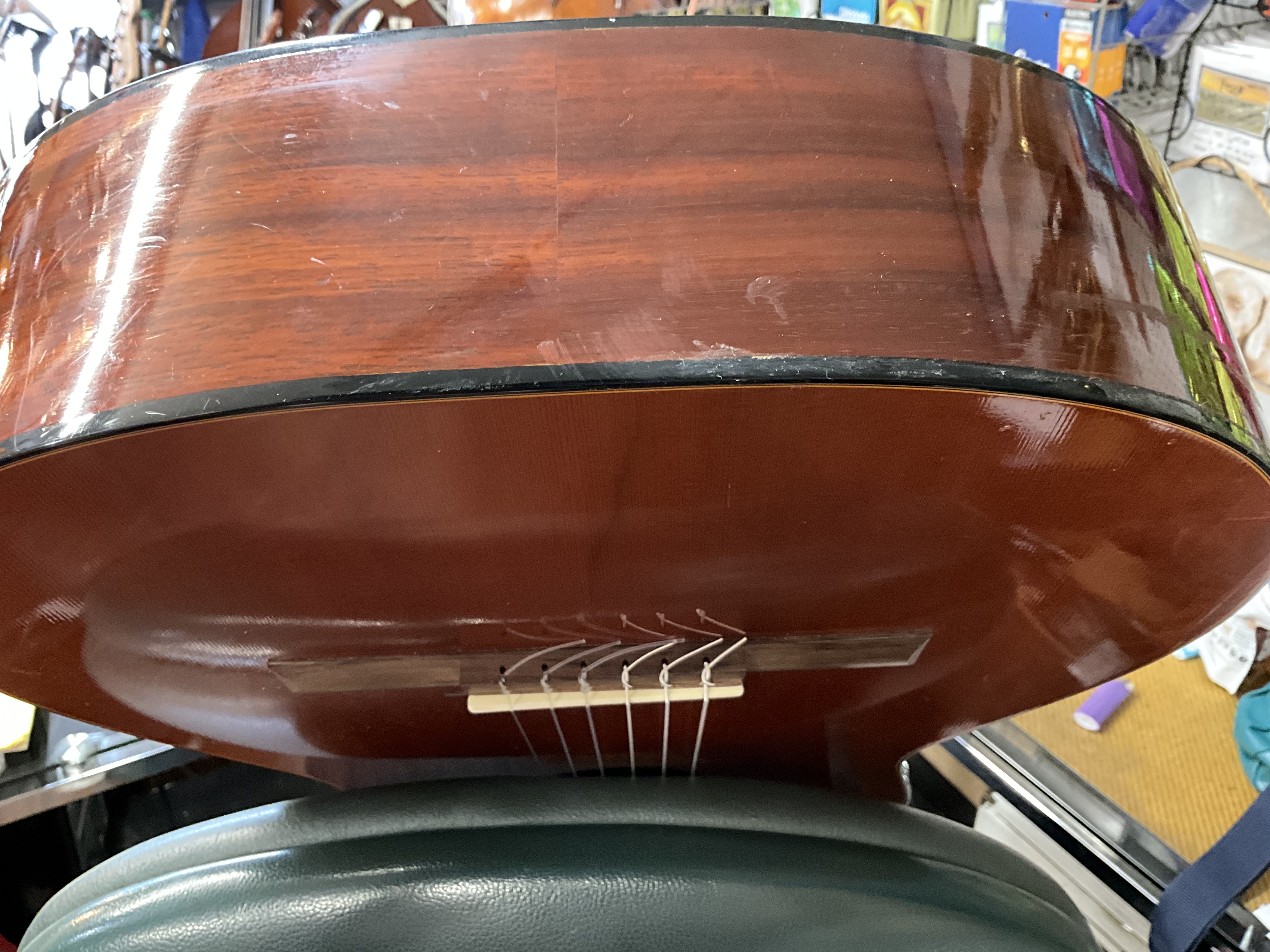 Spanish guitar made in Finland Plays great, has some wear as shown in photos $420.00 **tax and fees added in final price below. domestic shipping available please add an additional $65.00