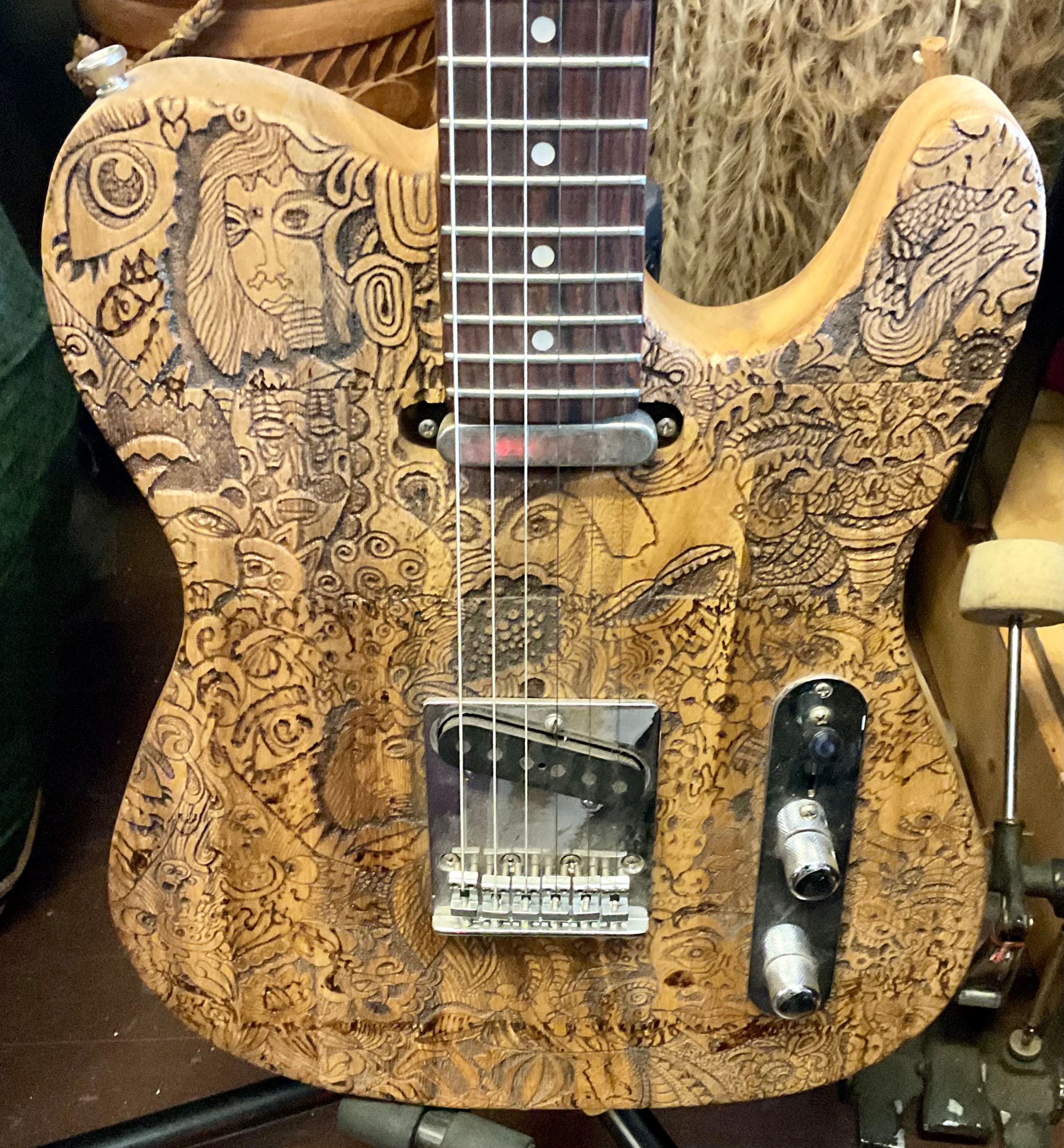 Made by owner and luthier Mitch Kopp! Has a poplar body, laser etched engravings . Beautiful guitar , plays great! Comes with soft gig bag , guitar weighs 8lbs. $1200.00 **tax and fees added in final price below. domestic shipping available please add an additional $75.00