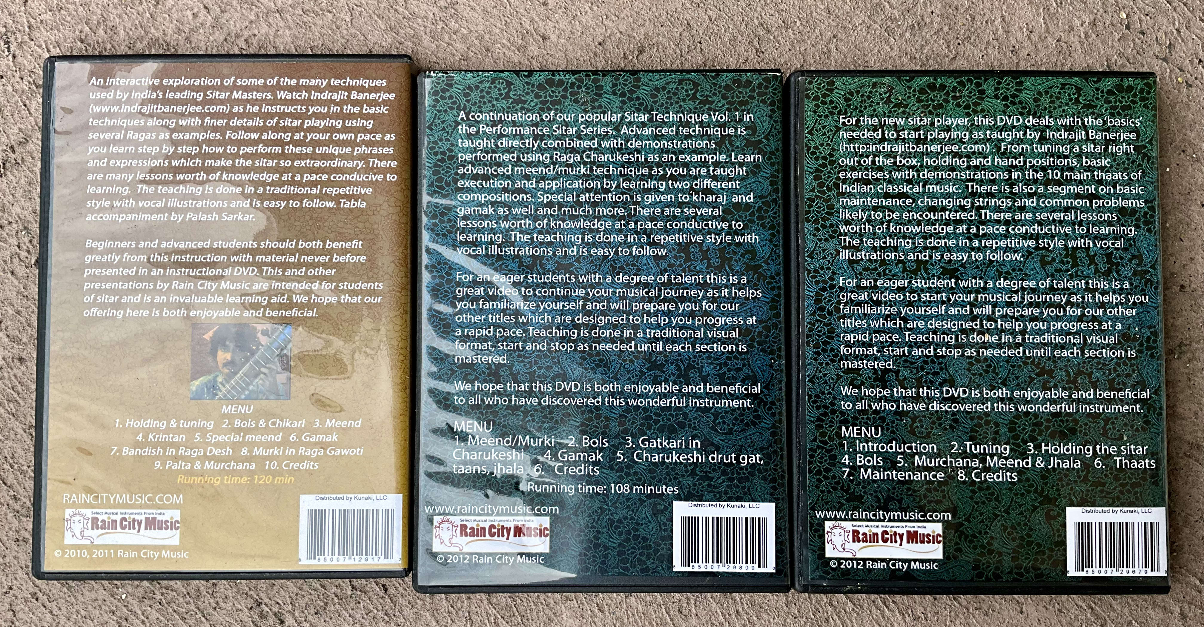 Rain City Music Production Performance Sitar Series DVDs – Sitar Technique Volumes #1, #2, #3