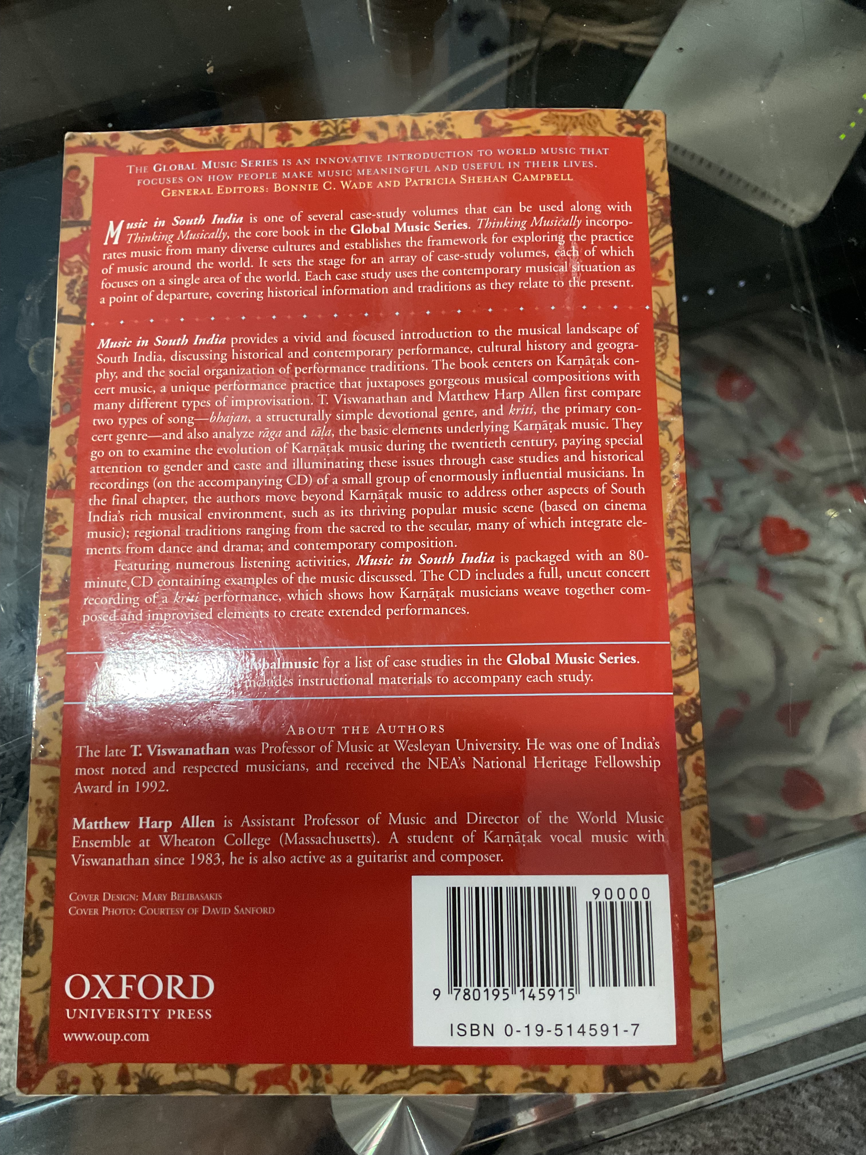 Music in South India -T. Viswanathan and Matthew Harp Allen – Paperback Book w/CD – Oxford University Press