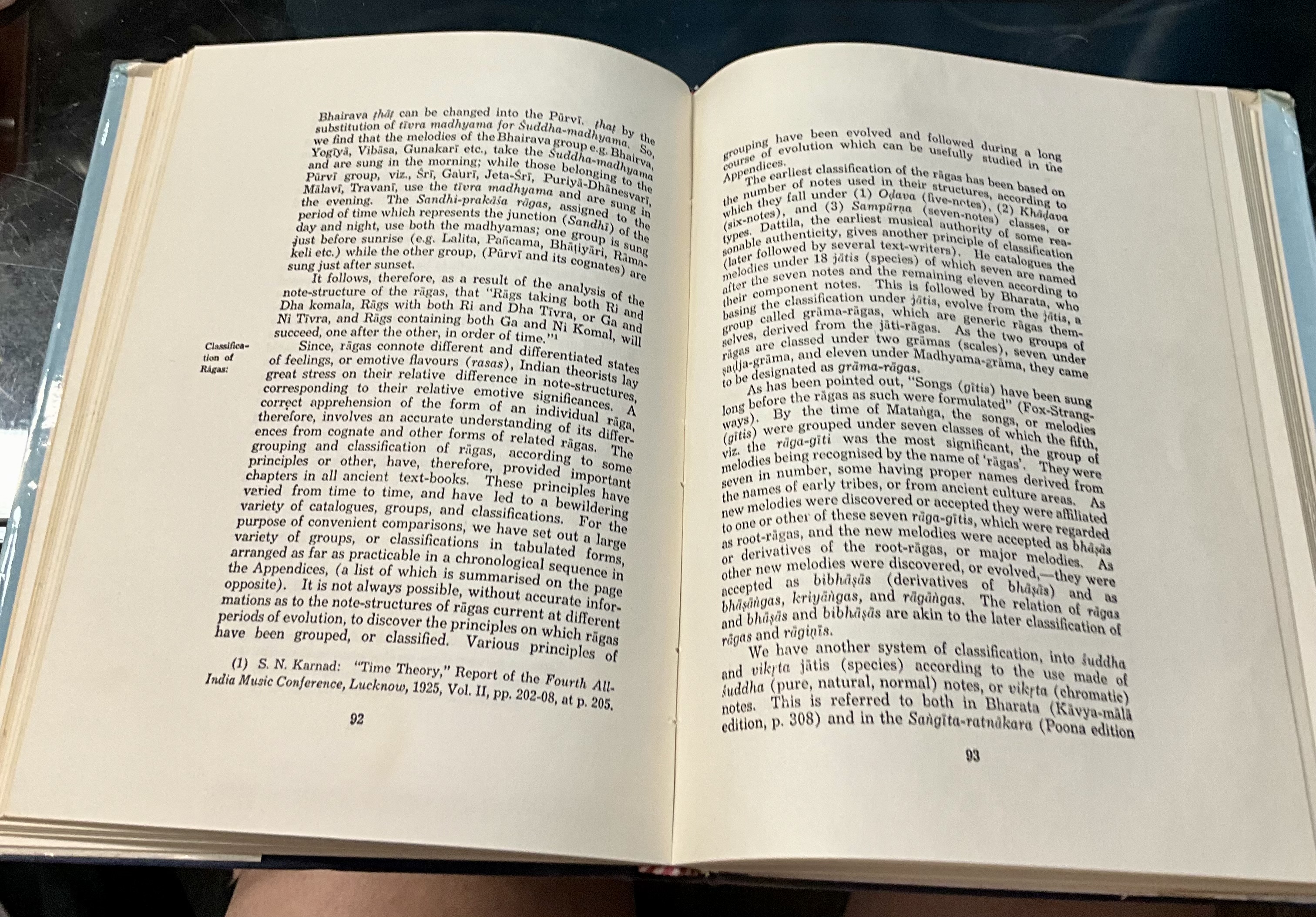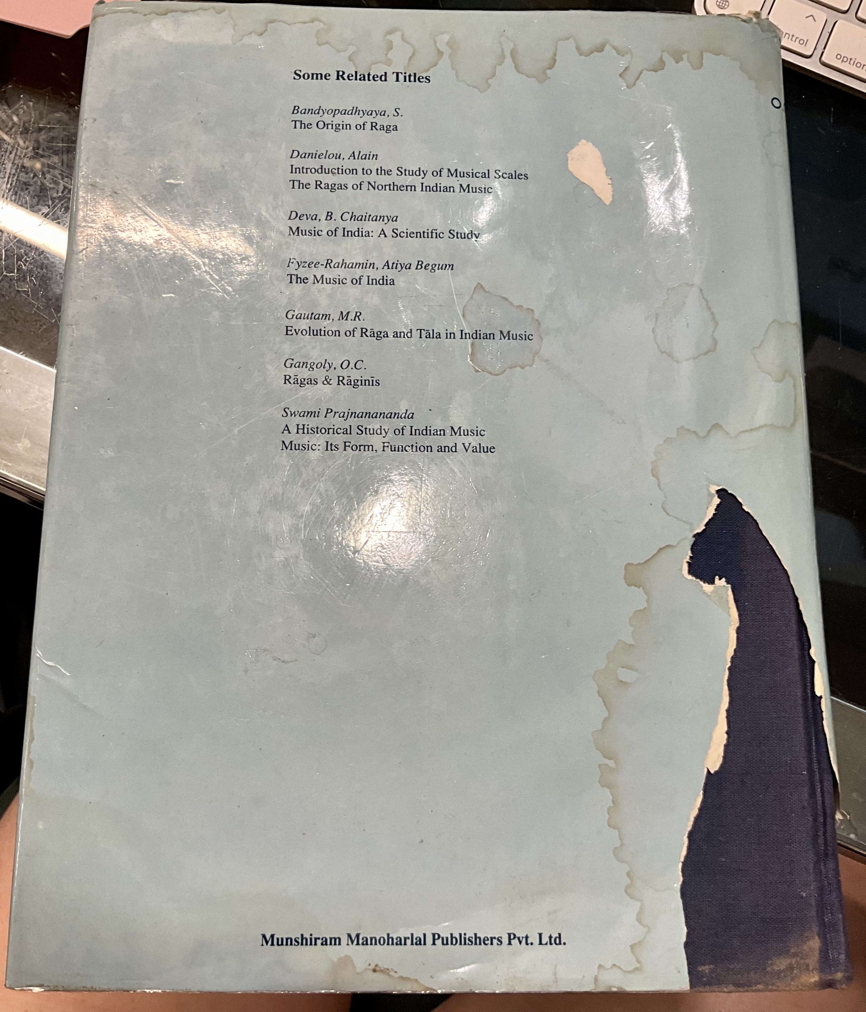 This is Professor O.C. Gangoly’s magnum opus on a phase of the History of Indian Music – the origin and the development of Indian musical modes-picturesquely known as the Ragas and Raginis. The author makes accessible to the general reader as well as to the practitioners of fundamental importance not only for the study of Indian achievements in the sphere of Music – but also for the future development of one of the greatest contributions made by India to the culture of the world. Music occupies the foremost position in the development of National Culture. Greater knowledge of the past history and of the lines of development of Indian Music, is therefore, necessary not only on the part of the expert exponent – but also on the part of the expert listener, the future connoisseur and patron of Indian Music. This exhaustive survey of the development of Indian Melodies from the Vedic Period to the time of Rabindra Nath Tagore-brings under focus fundamental data bearing on the theory of the Art and the stages of its development. The chapter on the History of Ragas, a large mass of materials hitherto imbedded in obscure and unpublished MSS have been dug up and set forth in a historical sequence-revealing a fascinating story of the growth and development of the Melodies. The peculiar theories governing the principles of Indian Music are set forth with remarkable ingenuity and scholarship from the hitherto unexplored sources. Apart from the data essential for the correct understanding of Indian Music Theories, the researches embodied in this volume have revealed surprising materials for the study of the mythology and iconography of Indian Music and connecting links which intimately bind together the masterpieces of musical and pictorial art. This indeed is a very revealing chapter in the history of Indian culture itself. For it was never realized earlier – as to what extent musical culture has offered valuable materials for the development of Indian Paintings and to what extent the Indian Pictorial Artist has collaborated in disseminating and vulgarizing fundamental concepts, some times of extremely abstruse mystical significance, for the apprehension of the general public in an easily accessible and graphic form. These pictorial data will help to analyse the fundamental emotive character – the ethos of each Raga – so that the practitioner should not use indiscriminately any pattern of Indian Melody – except to express its appropriate emotive concept. The most valuable data offered in this volume is the carefully collected material bearing on the history of the classification of the Ragas set out in a series of appendices-which themselves offer a complete map of the History of Indian Music. $39 **tax and fees added in final price below. shipping available please inquire CcBP