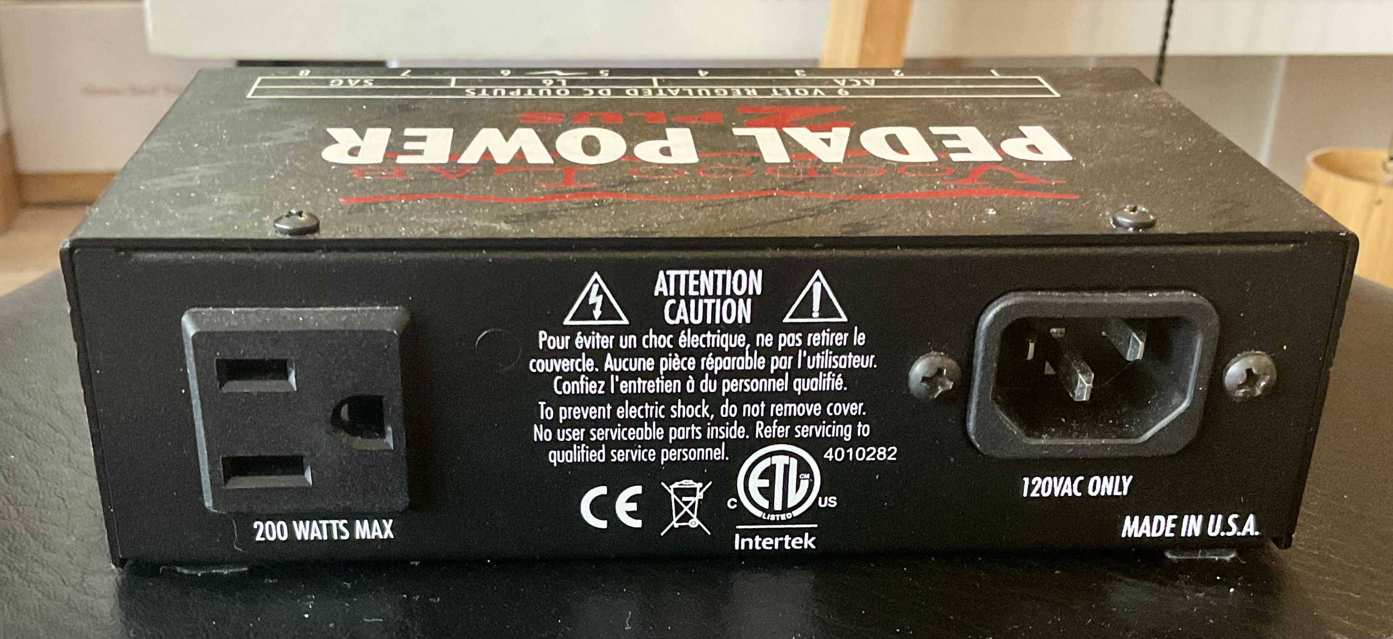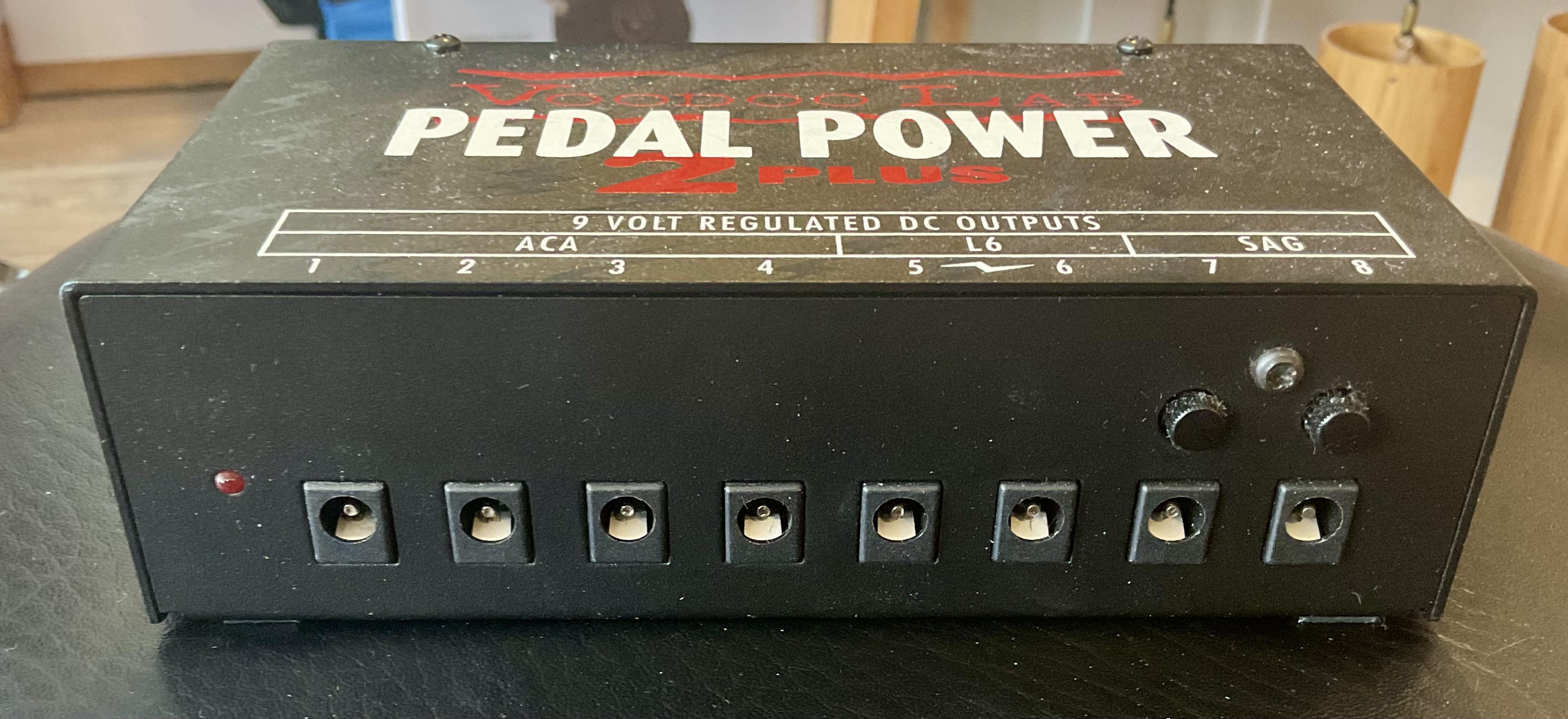 Pedal Power 2 PLUS is the most dependable and widely used guitar effects power supply in the industry, delivering legendary performance to a wide variety of devices from sensitive vintage battery-powered stomp boxes to modern DSP effects. The 2 PLUS is equipped with eight galvanically isolated 9V outputs, including six outputs switchable to 12V, two 250mA outs for more power-hungry effects, and two outputs featuring a SAG function that simulates the output of a low battery. 18V and 24V operation is also available by combining outputs with available special cabling. A handy onboard 200-watt courtesy outlet is included for powering an additional device such as an AC-powered effect, wireless system, or another power supply. Pedal Power 2 PLUS is ideal for small to medium pedalboards or as a supplemental power supply in a larger rig. $179 **tax and fees added in final price below domestic shipping available add additional $35