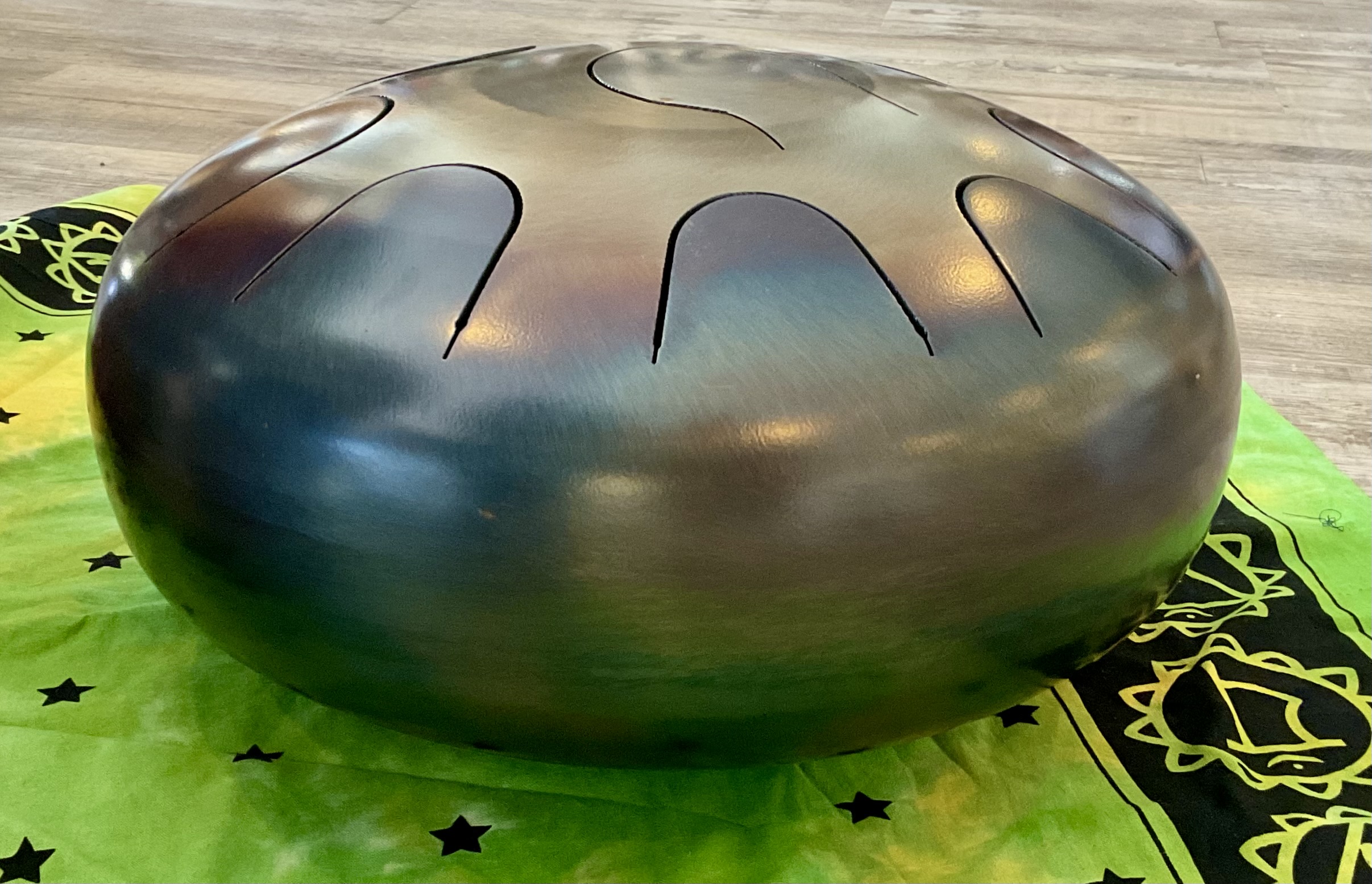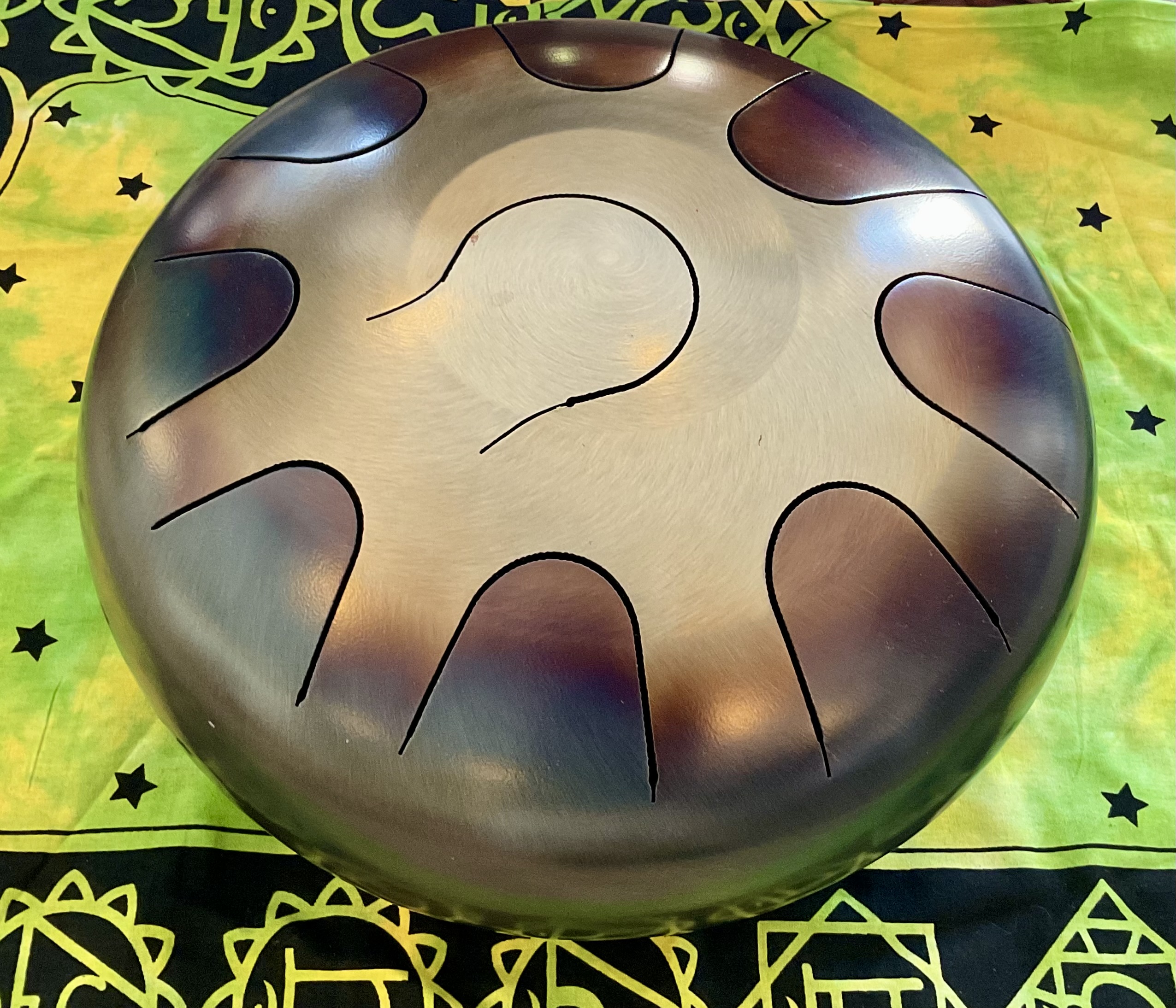 Each pyramid is handmade. They vary slightly from one another as would be expected. This size pyramid measures approx 14″x14″x10″ tall and weighs about 2.5 Lbs This Zen pyramid is paired with a Medium Bamboo Magic Mallet for sound activation. Immerse yourself in the enchanting realm where complex harmonies intertwine with sacred geometric shapes. Unlock the true essence of transformative sound as harmonics weave in and out, unveiling a captivating sonic journey. With each activation, this exquisite sound sculpture becomes a vessel of unique sounds, exclusive to this extraordinary instrument alone. Individually handcrafted, these sonic sculptures bear a distinctive imprint of sonic information. Inspired by the shape of the pyramid, the Zen Pyramid instrument is a percussion masterpiece. Meticulously forged from a fusion of eight alloy bars, it forms a unified sculptural form. Our Pyramids are expertly fashioned using a special alloy blend, precisely designed to produce desirable acoustic properties such as resonance and overtones, as well as exceptional physical attributes like density and tarnish resistance. Striking the structure initiates a complex and delightful sound that resonates through the air. The frequencies emitted by this instrument fall within a range that is inherently pleasing to the human ear. The unique configuration of this instrument gives rise to a dynamic soundscape, traversing various modes and states of sonic transmission, from the moment of activation until it eventually returns to silence. Furthermore, the handle grants the player the ability to introduce a rotating motion, opening up infinite sonic possibilities for live performances or studio recordings Belonging to the percussion family of musical instruments, the Singing Pyramid is categorized as an idiophone according to the Hornbostel-Sachs classification system. Similar to marimbas and xylophones, the pyramid resonates as a whole entity when struck. The Pyramid possesses an inherently indefinite pitch and produces a myriad of overtones when activated by the appropriate striking tool. Suspended from a pyramid handle, it enjoys the freedom to vibrate with unrestrained elegance. By employing the included tool, you can unleash a symphony of complex and evolving ringing tones. Moreover, your hands can be employed to subtly dampen or modify the sound, introducing nuanced motion to the instrument. Unleash your creative expression with the 6″ Zen Pyramids Incredible Harmonic Alloy Singing Pyramid – an instrument that melds captivating design, mesmerizing harmonics, and limitless sonic exploration. Brand New $299 **tax and fees added in final price below domestic shipping available add additional $45