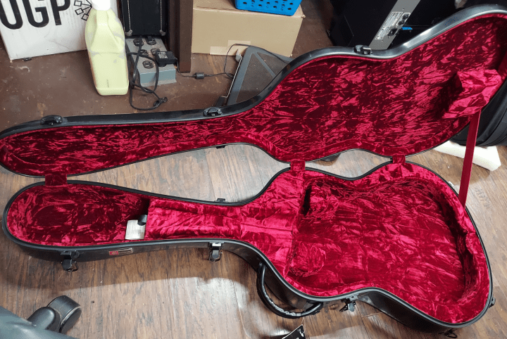 100% purity fiberglass arch-top exterior. Can hold 400lb pressure 6 latches and thick rubber strip seal ensures the super security and waterproofness of the case. Thick padded (0.8″ at least) inside with velvet lining. Two removable cushions for inside customizing. Large accessory compartment (0.55″x0.35″) with lid. Leather covered comfortable handle. Brand New $500 **tax and fees added in final price below domestic shipping available add additional $50