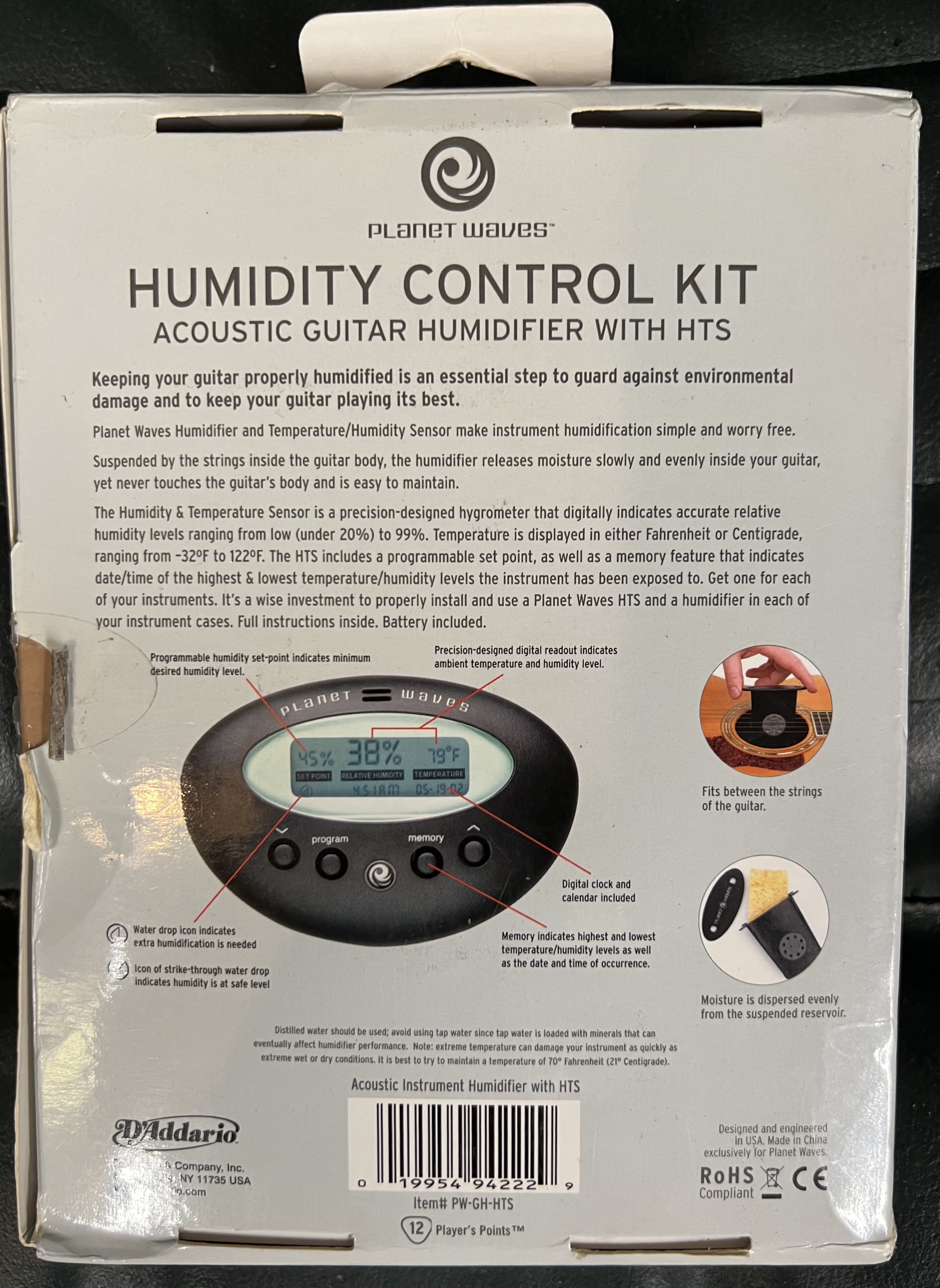 Planet Waves Acoustic Guitar Humidity Control Kit with Humidity and Temperature Sensor