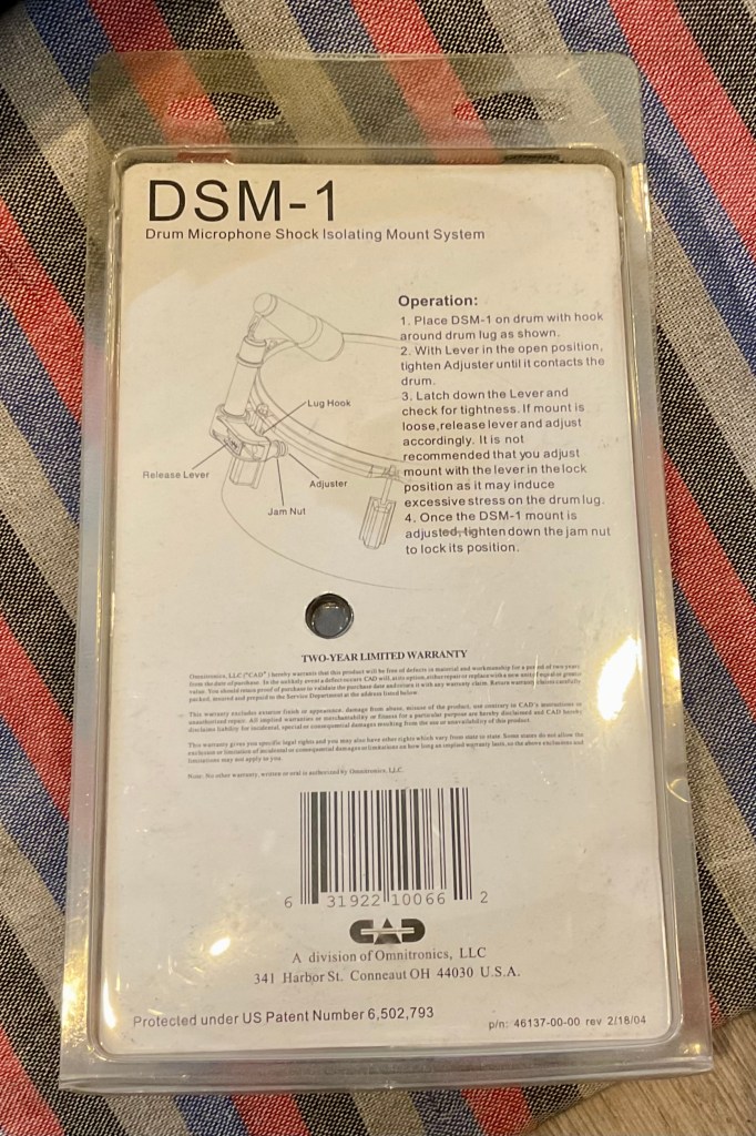 CAD DSM-1 Shock Isolating Drum Microphone Mounting System Easy Adjustment to Fit Most Lug-Type Drums Features Quick Release Design Integral Shock Isolator Allows for Extraordinary Reduction of Mechanical and Harmonic Noises Rugged Die-Cast and Steel Construction $29 **tax and fees added in final price below domestic shipping available add additional $20