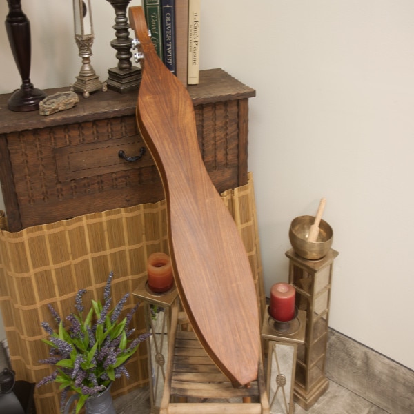 This special flute crafted from sustainably and consciously sourced Northern Catalpa. The natural wood grain of this flute is beautiful and has been finished with tung oil. Catalpa is a very solid wood, so this flute feels very substantial in the hand. The block is made from oak and tied on with leather cord and a sterling silver bead. The flute has been wrapped in two places with synthetic sinew. This flute responds well to hard breath pressure, and has a deep resonant and meditative tone. These flutes are a combination of fine art sculpture, musical instrument, and meditation tool. This instrument is in the key of “E” and plays wonderfully. The sound is clean, slightly breathy, and full volume. The beauty of the Native American Style Flute is its ease of playing. Anyone can pick it up and produce a gorgeous tone by sticking to the primary scale, which is a minor pentatonic and hauntingly beautiful. But as the saying goes: “It takes only 5 minutes to learn, and a lifetime to master.” This style of flute will provide years of musical exploration and growth. At the same time relaxing the nervous system and calming the mind though the simple process of mindful breathing. It is a wonderful instrument that allow anyone to find the music within themselves and play from the heart. $450 **tax and fees added in final price below. domestic shipping available please inquire