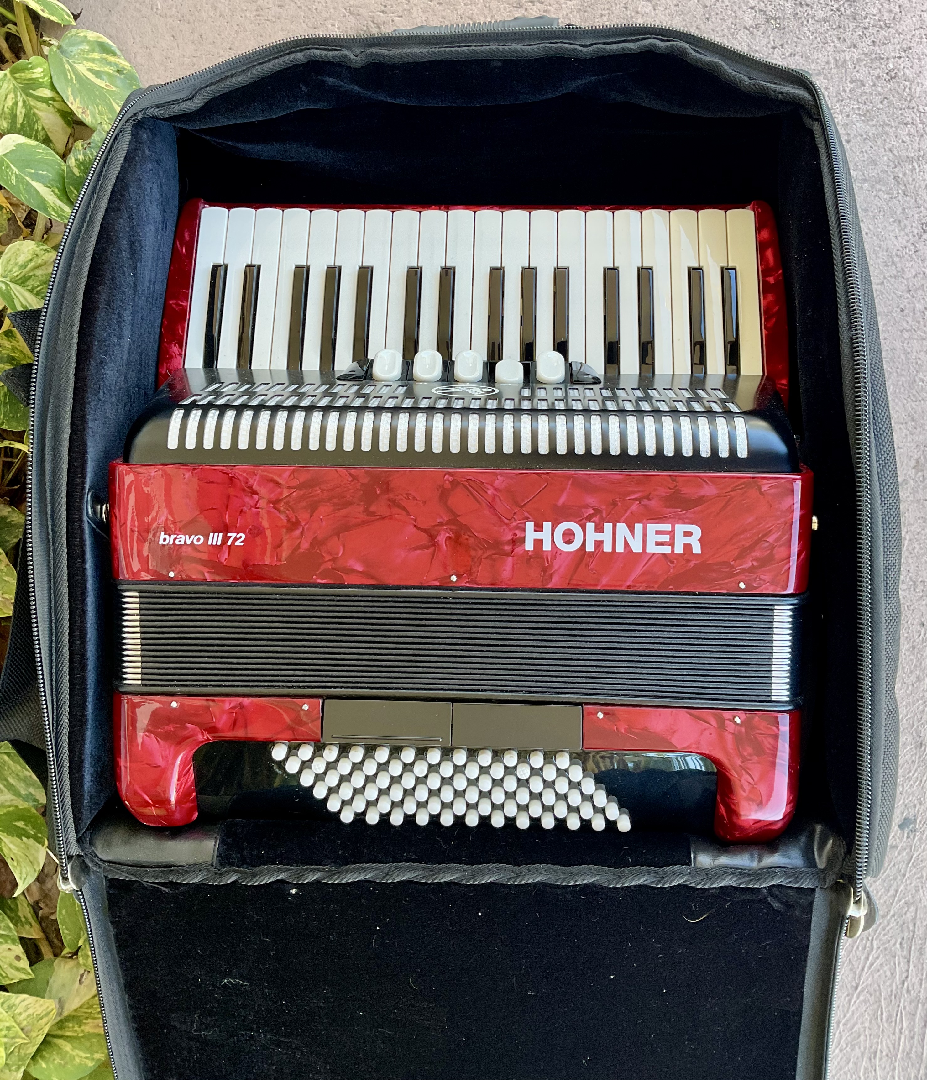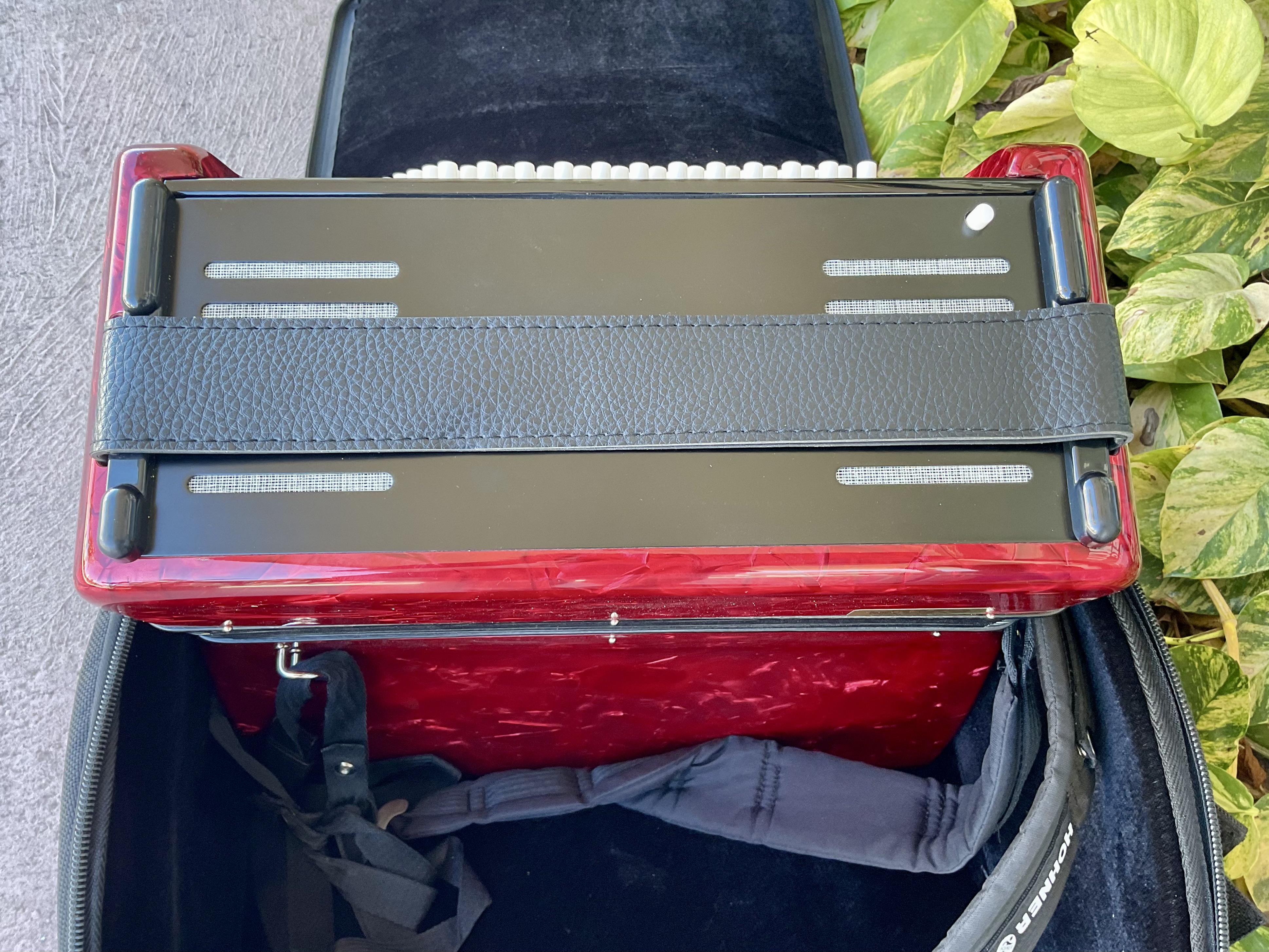 This harmonium is lightweight and very portable; only weighs 16.7 lbs. and the top of the case can fold over to close it. The keyboard pops up for playing and can be easily placed in a locked-down position for storage and travel. The keyboard pops up for playing and can be easily placed in a locked-down position for storage and travel. When closed, the height of the harmonium is 7.5 inches and when open with the keyboard popped up, the height is 12.25 inches. The double-fold bellows provide can be opened for Left or Right Handed playing and provides airflow to the 32 keys, with a note range from 2C to 5G, and produces excellent sound volume. There are 2 stops that control airflow to two reed banks; the higher bank: 3C to 5G and the lower bank: 2C to 4G. There are 2 knobs that control the drones: 3C and 3G. The reeds in the harmonium are tuned to 440 +/- 3 cents prior to shipping. Included Accessories: Padded Soft Case. DISCLAIMER: The instrument’s finish color and decor may vary from photo. Shellac is very impressionable (no pun intended) and during the instrument’s long transportation from India, the shellac finish becomes marred by the packing materials and may cause the sides of harmoniums to have impressions. These impressions are cosmetic and do not affect the playability or sound, so we do not consider such impressions as blemishes or defects. *What is BLEMISHED: These products are new and unused with superficial blemishes that may include, blisters in the finish, scratches, dents, stains, discoloration, rust or pitting on metals, imperfect glazes, and non-structural repairs such as putty in nail holes, or other surface marks. A “-1(S)” product has minor blemishes and a “-2(S)” product has moderate blemishes and/or minor repairs. The irregularity does not affect the playability or sound quality of the instrument. $650 **tax and fees added in final price below domestic shipping available add additional $50 B-Stock
