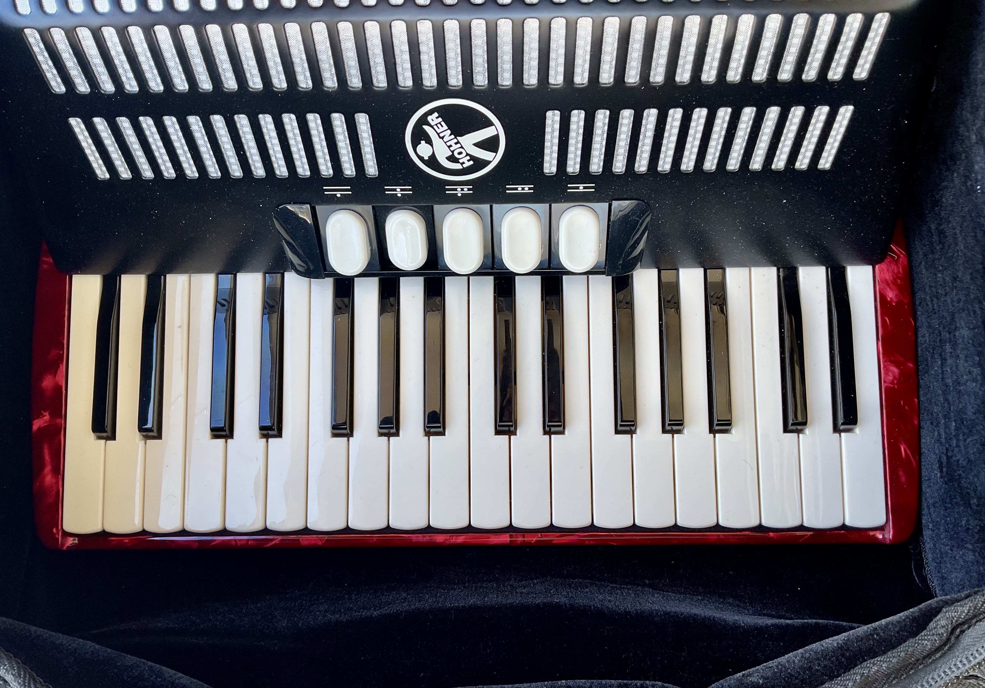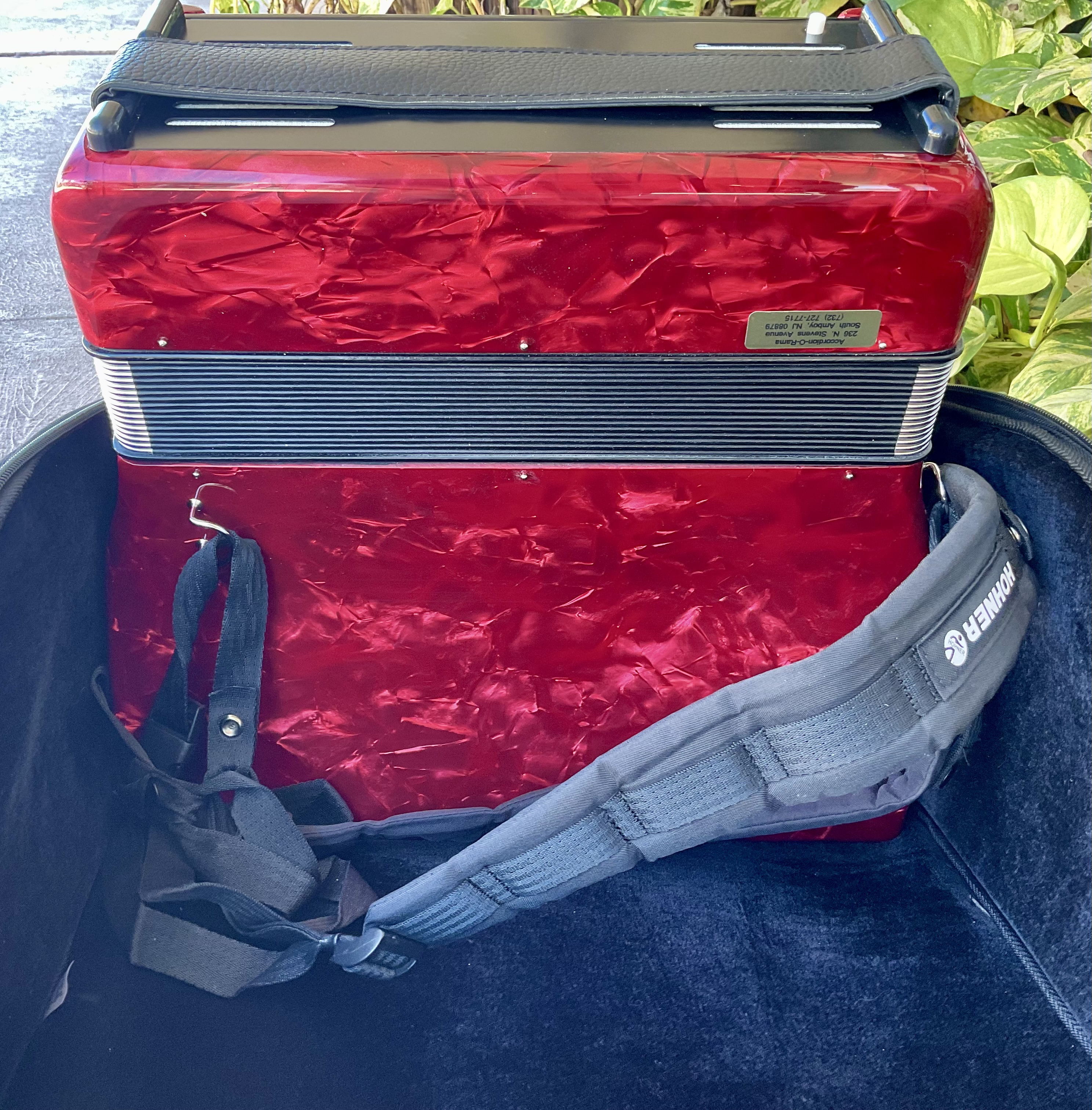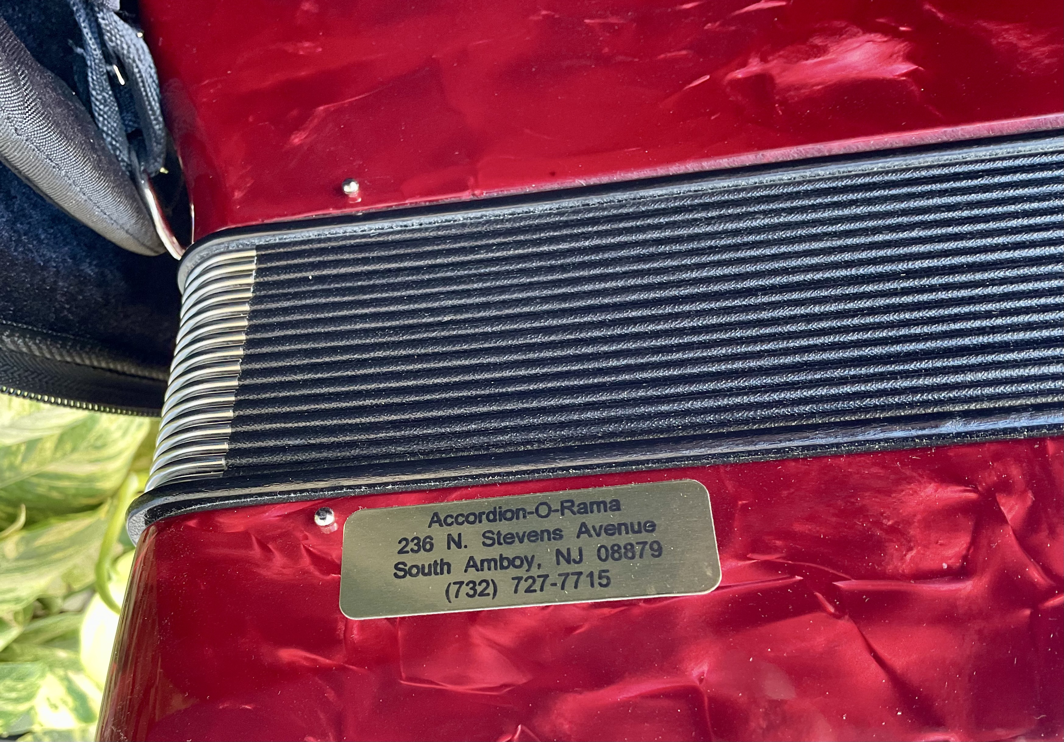 Here’s one of the most distinctive approaches to playing melody on a chord zither. It appeared in response to the rapid increase in popularity of Hawaiian music in the 1920’s. The instruction manual is bold enough to say that it “might well be called the Original Hawaiian Instrument,” though the Hawaiian steel guitar had already been played for decades. Even the patent plainly states that the instrument “simulates closely the tonal effects of the so-called Hawaiian steel guitar.” There’s a single melody string which is under fairly low tension. A sliding (or rolling) weight rests on the string and is positioned by the player to locations marked on the large note label under the string. That position controls the pitch of the string when plucked. The relatively heavy weight actually bounces on the string and alternately raises and lowers its tension a little. Thus the pitch is raised and lowered a little around the desired pitch, and the sound becomes a broad vibrato. In addition, as the weight moves from one played note to the next, the weight stays in contact with the string, and creates a glissando that is reminiscent of the sound of a Hawaiian steel guitar. The patent for the Tremoloa was granted in 1932 to Harold Finney, a principal in the International Musical Corp. at the time, and John H. Large, an inventor who also received a patent on a form of the Ukelin. The Tremoloa patent was applied for in 1929 and shows Form 1 of the instrument. We could assume that the Tremoloa wasn’t available before about 1929. $299 **tax and fees added in final price below domestic shipping available add additional $50